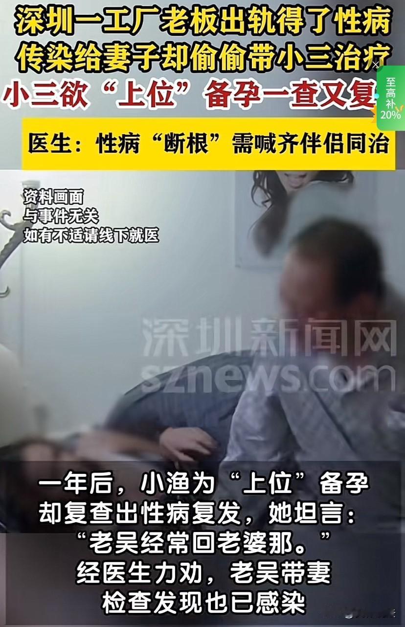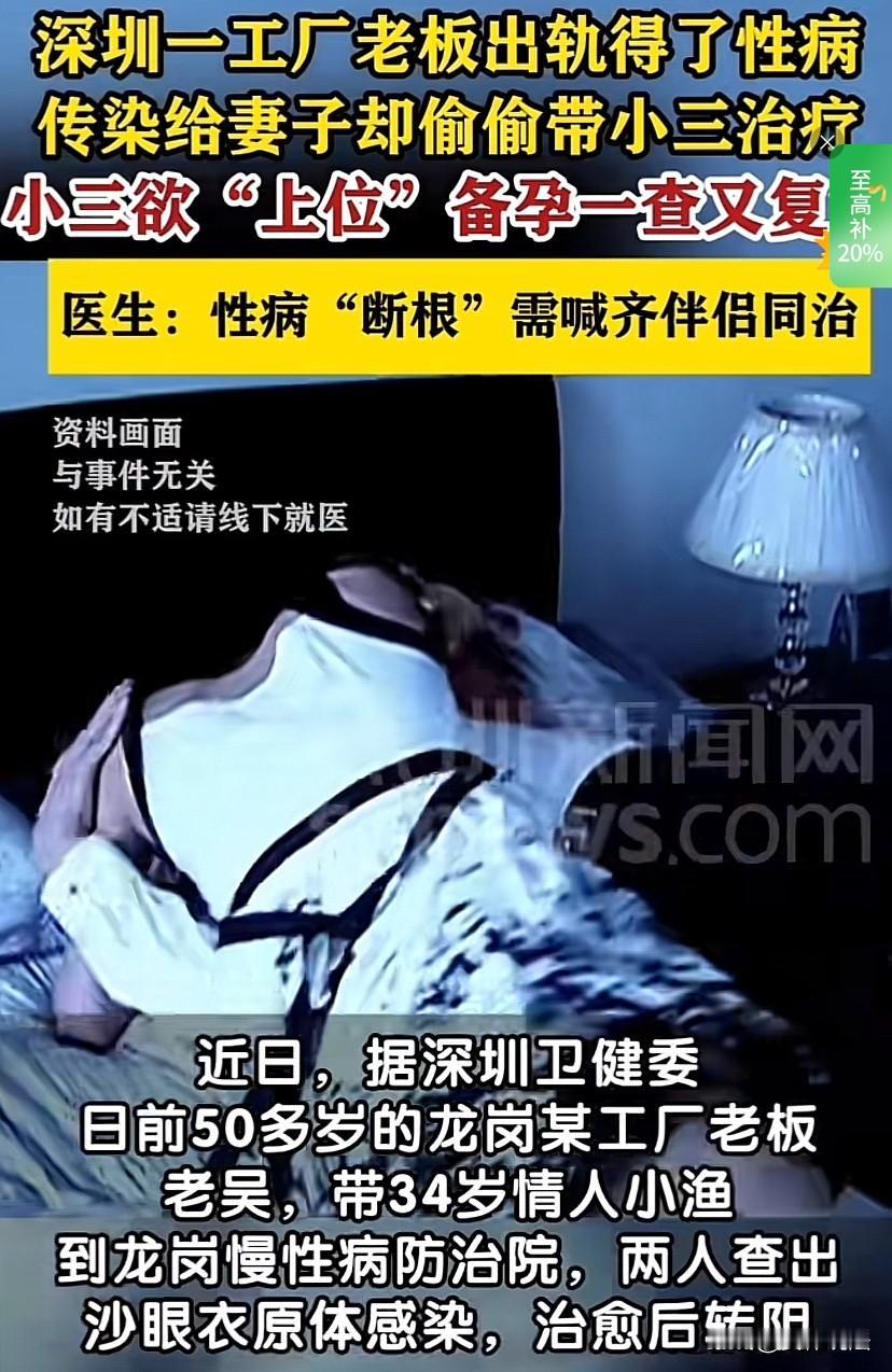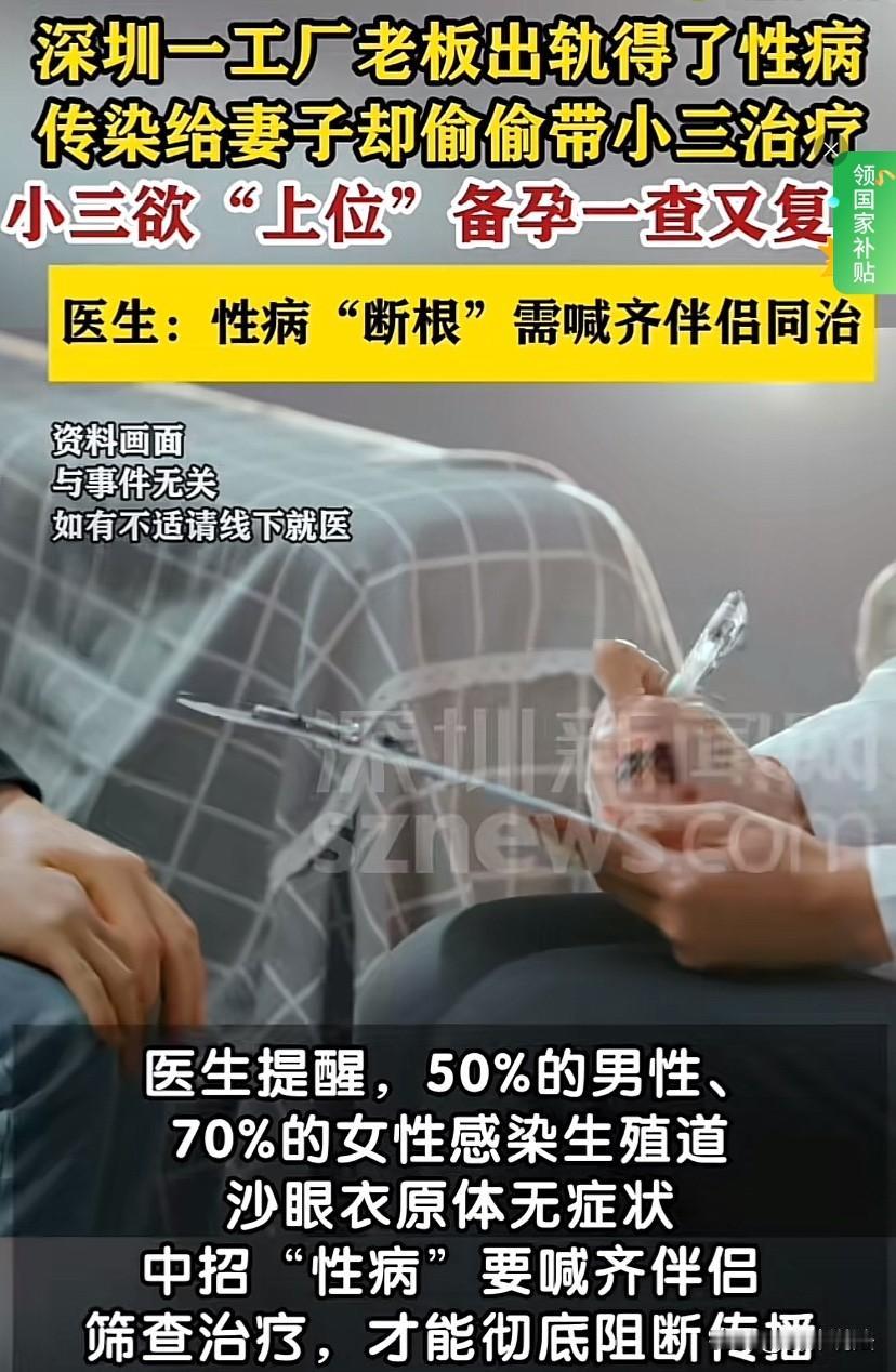 “值得警示!”广东深圳,一工厂老板耐不住寂寞,婚内出轨,结果与情人一起感染性病,