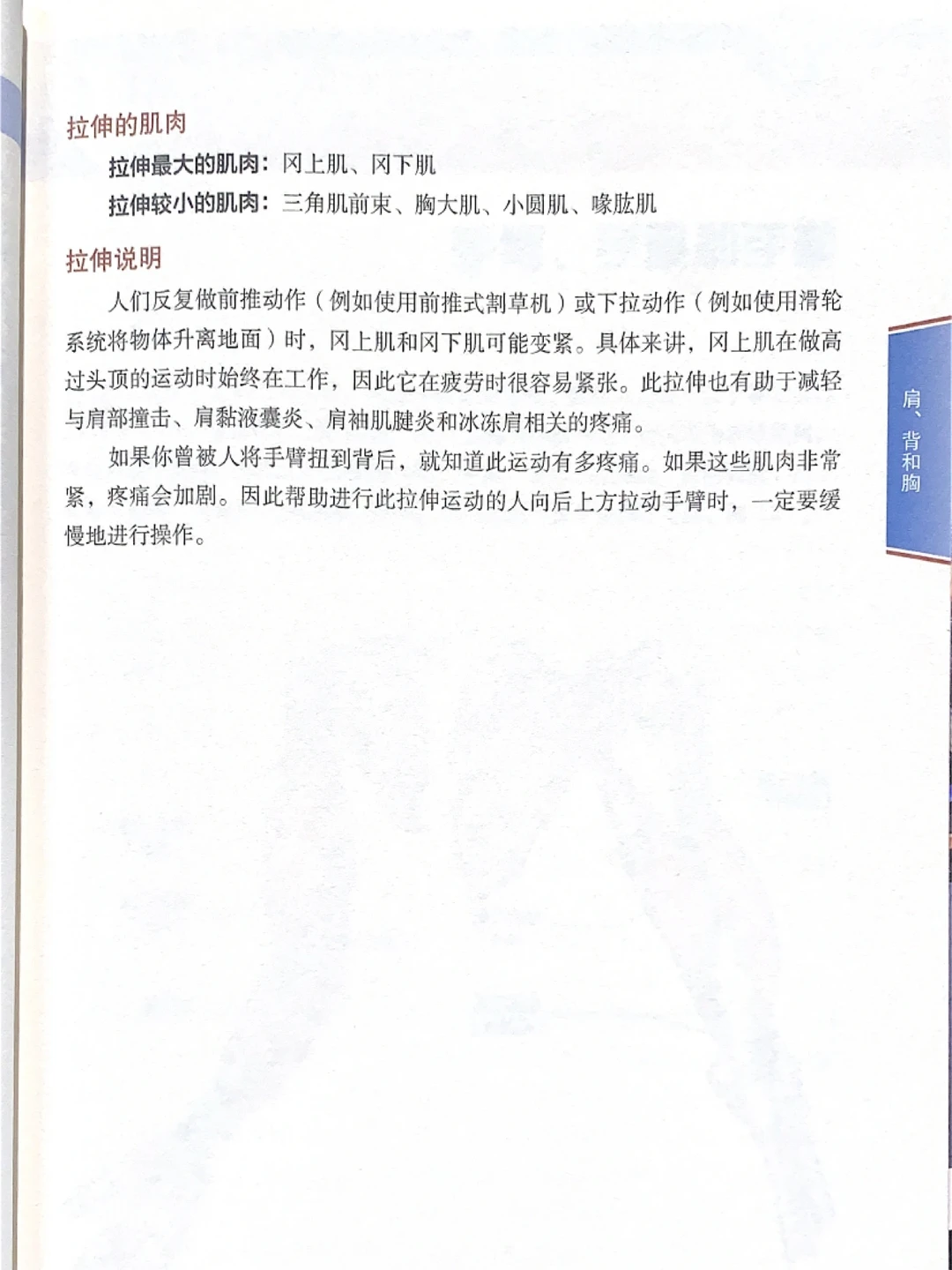 4.通过精准拉伸可有效消除触发点,改善肌肉张力,治愈疼痛。如果遇到肩部疼痛的情况,请不要勉强拉伸。