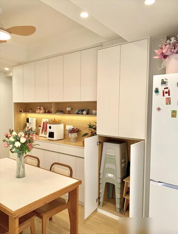 谁懂啊!装修时只想着给衣服留位置,没管塑料凳、电风扇这些“偶尔用但必须有”的东西,入住后沙发上、地板上全是它们,乱到想哭!最近看好多人说,多亏妈妈提醒提前规划——餐边柜塞塑料凳、阳台柜放风扇、衣柜留次净衣区,这些细节比买收纳盒管用一百倍! 真的!收纳不是“装得多”,是“把容易忘的小物件藏好”,这才是家的“稳骨架”!想想夏天过了的电风扇堆在角落落灰,亲戚来临时翻出塑料凳乱摆,再爱干净也架不住啊,妈妈的经验真是“生活的智慧”! 你们家装修时妈妈有没有提醒过什么“隐藏收纳”?咱们中国人的家,不就是靠这些藏在细节里的“稳”,把日子过成“暖暖的顺”吗?