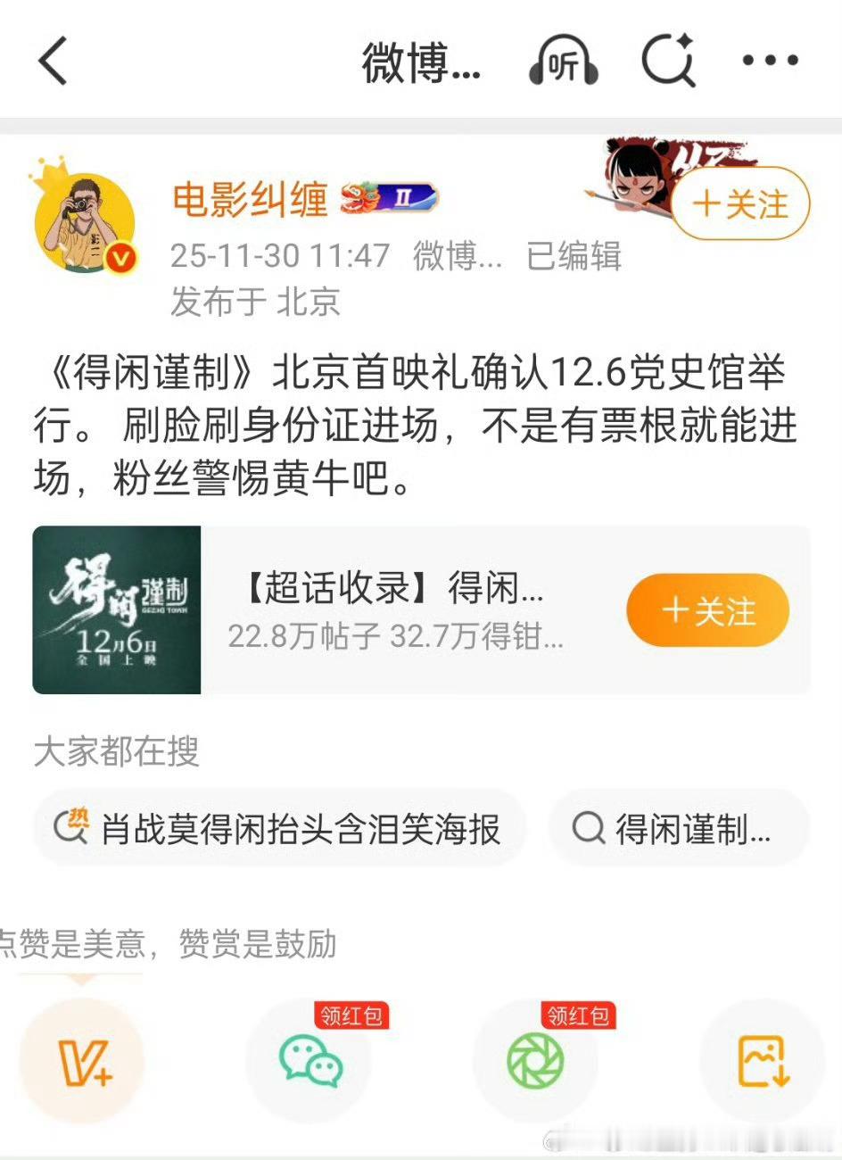 得闲谨制在上映当天即12月6号在党史馆举行首映礼!规格好高的感觉