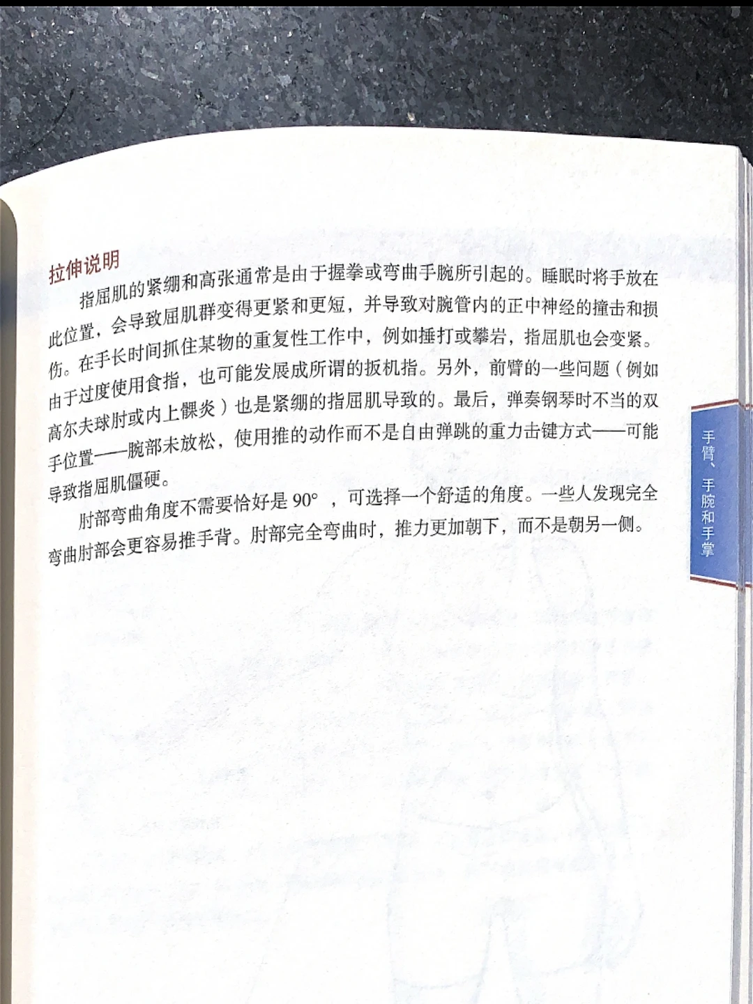 手臂、手腕和手掌🔟3️⃣ ➡️指屈肌拉伸 ✅呼吸顺畅有节奏有深度 ⬇️拉伸说明: 指屈肌起于前臂内侧,止于手指掌面。长期的抓握物体,指屈肌持续收缩就会引起损伤。损伤后会引起手指掌面及关节的疼痛。 喜欢收藏➕关注❤️