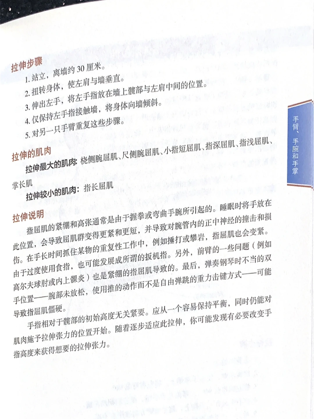 手臂、手腕和手掌🔟4️⃣ ➡️借助墙的指屈肌拉伸 ✅呼吸顺畅有节奏有深度 ⬇️拉伸说明: 如果是急性疼痛,因为急性疼痛很多都是与受伤有关,创伤一定要去医院及时去检查,我们今天主要说说慢性疼痛,我们还是按照部位把我们的腕关节疼痛分为四个部位:分别是尺侧疼痛,桡侧疼痛,掌侧疼痛,还有背侧疼痛,这个四个部分基本就已经包括了我们腕关节的所有部分。 喜欢收藏➕关注❤️