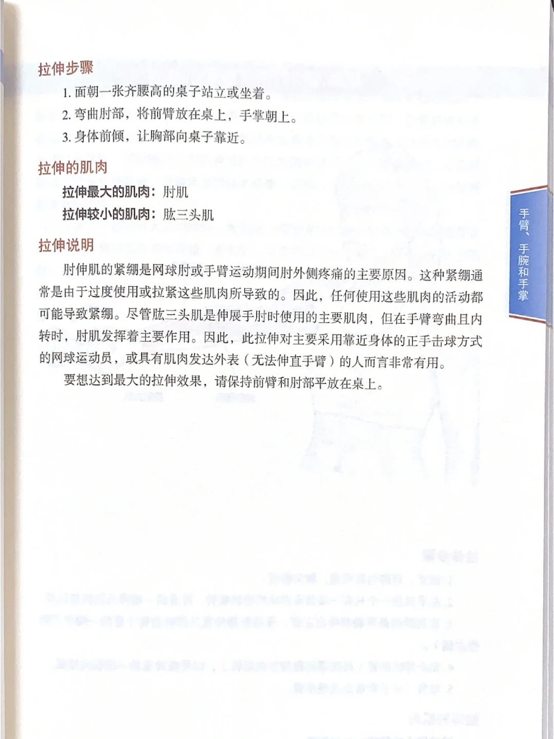 手臂、手腕和手掌4️⃣ 💪肘肌拉伸 🈶注意事项:保持呼吸平稳 👉拉伸说明: 1.当你反复做同样的动作,如打字、写字、打高尔夫球或打网球时,会增加肘部的压力。 2.可以改善肘肌、肱三头肌过于僵硬和紧缩的状态,锻炼肌肉和肌腱的伸展能力,增加肌肉弹性,便于运动时储备更多的弹性势能,增强、三头肌的锻炼效果。 喜欢收藏➕关注