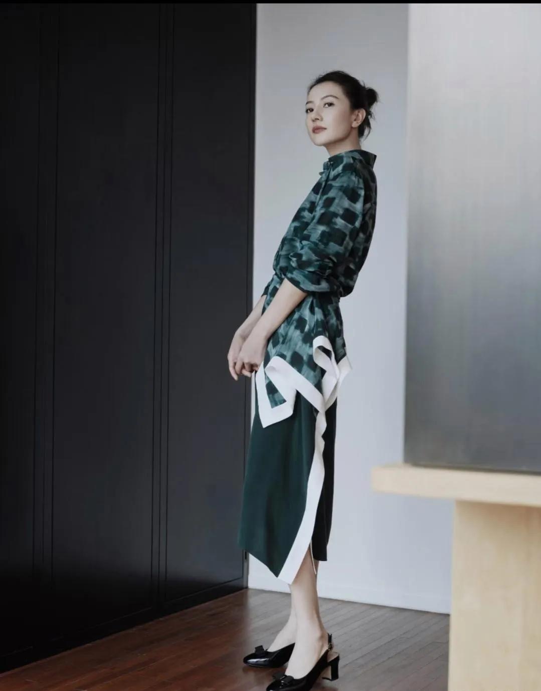 高圆圆这墨绿衬衫裙杀疯了!松弛感里裹满高级 高圆圆这袭墨绿格纹裙一出场,直接把“优雅松弛”焊在审美上了✨ 衬衫裙裹着冷调质感,撞色白边添了灵动,黑方跟凉鞋一搭,利落又高级 往那儿一坐,姿态漫不经心,可穿搭的质感全是细节——这才是姐姐的氛围感杀招啊!