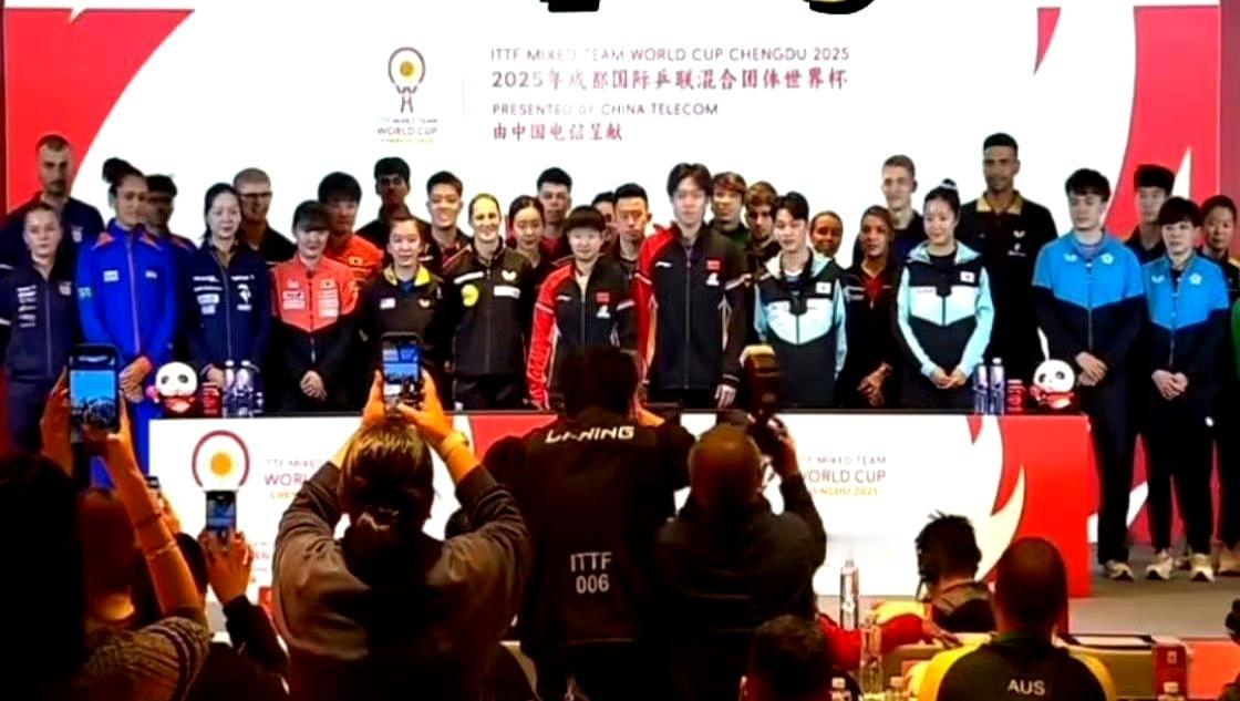 抽签仪大合照来啦! 成都这个福地,让两个世界第一终于并肩站在了最中间,孙颖莎和王楚钦俩人从台上到台下,嘴巴就没停过,一直热络地聊着天。 这就是好朋友之间最自然的样子,大大方方地交流,根本不需要避讳什么。 两小只就是要带着这份默契,一起去打好成都的混团赛。