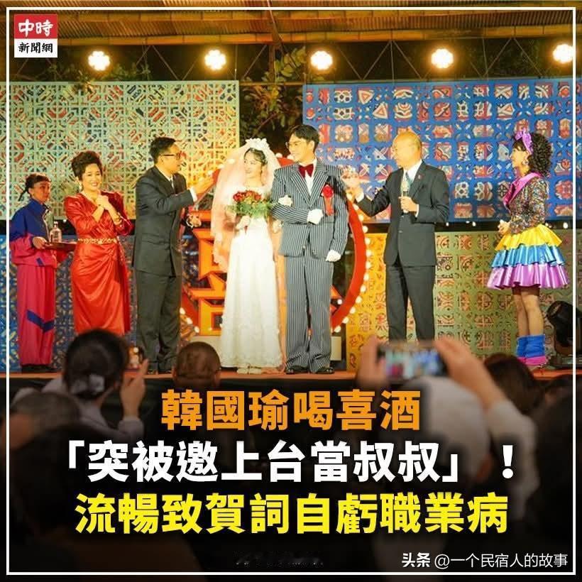 韩国瑜陪98岁老母看岑永康话剧,老母叮嘱少喝酒! 昨天,国民党“一哥”韩国瑜带着98岁的老母亲前往新北市,观看王伟忠监制、岑永康主演,反映眷村生活哦《一村喜事:康乐队来了》舞台剧。期间,在新人结婚环节,韩国瑜还被请到台上,担任“新郎”叔叔,“主婚人”岑永康向韩国瑜敬酒,韩国瑜98岁的老母亲叮咛韩“不可以喝酒”,还挺应景。 和民众打成一片博感情,韩国瑜老手了。