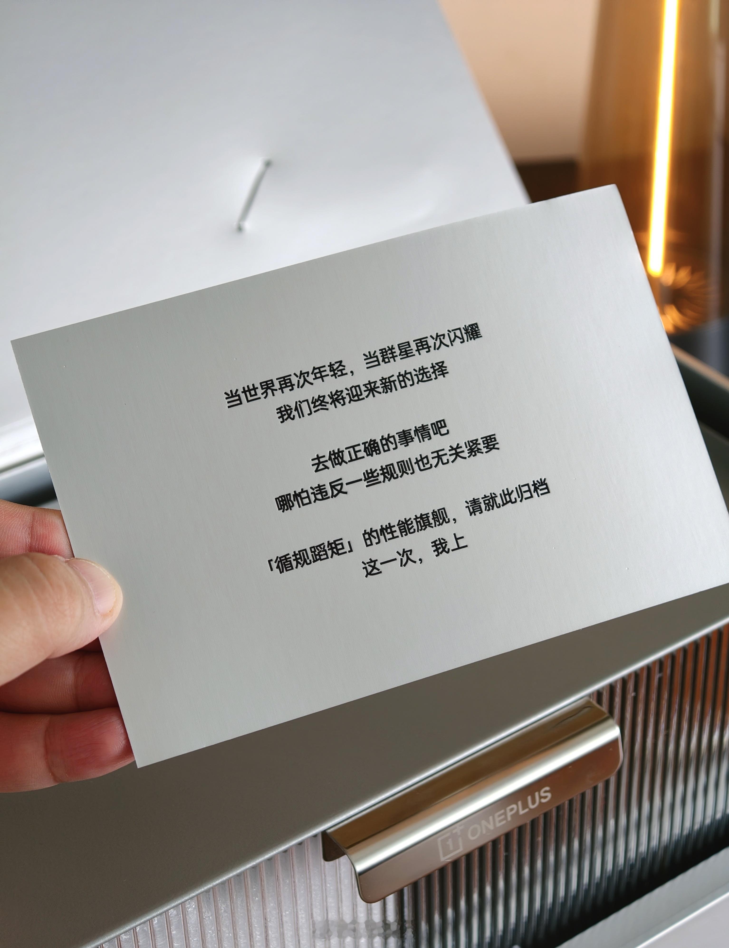 还记得两年前一加Ace2邀请函是「手机停机坪」吗?今年,他们在一加ace6t 发布前夕,寄来了「手机休眠仓」。铝合金外壳、磁吸门,还有一枚磁吸补光灯……这是把手机当手办照顾呐。(当然,这也是告诉你,可以把旧手机放进去了12.3,期待一下首发骁龙8Gen5、并且电池突破8200毫安时的新手机。目前我知道价格会有点惊喜的。