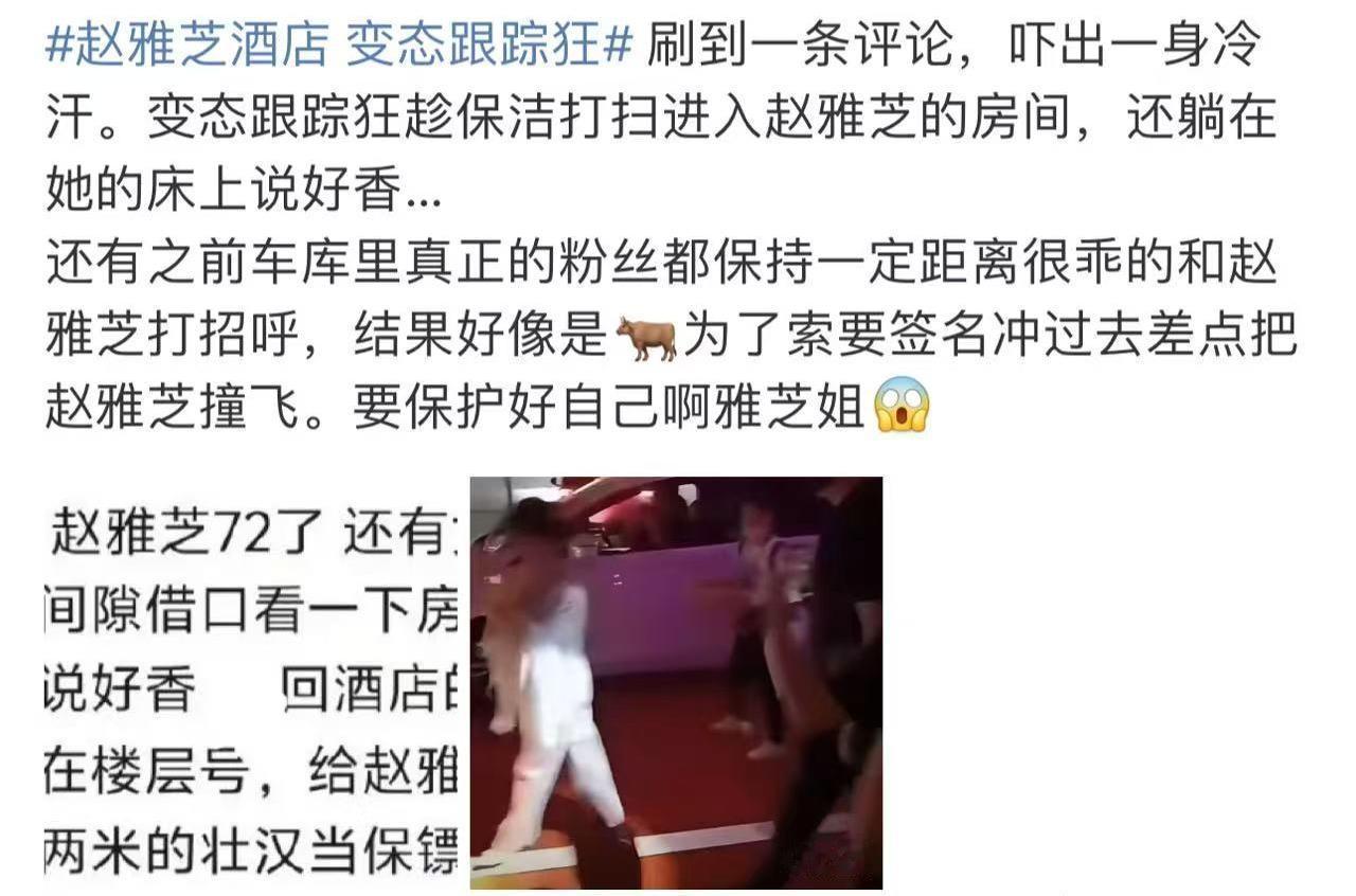炸裂!72岁赵雅芝被跟踪,曝料者称私生进入房间 更恶心的还在后面 赵雅芝最近的事情,大家都看到了,私生饭太可怕了,真的让人担心,现在追星都这样了吗,这已经不是追星了吧。 11月28号那天,好像是私闯房间了,想想都后怕,那个人,有点过分了,说是猛吸枕头,真的假的,感觉不太可能,那个爆料人,是不是要搞事情,消息来源,也不知道靠不靠谱,这种事情,还是得小心点。 还有8月份,车库那次也吓人,差点撞到人了,车库那么危险,幸好没事,这样的行为,肯定是骚扰了,而且很危险,明星也不容易啊,感觉人身安全都受威胁了。 大家都在说,太离谱了,都觉得应该谴责,追星要有底线啊,不能打扰别人生活,得尊重别人的空间,每个人都要有自己的私人空间嘛。 现在都这样了,流量太重要了,大家都关注明星私事,私生饭越来越多,他们到底怎么想的,是不是想得到关注,然后想很多不切实际的事情,这些人,真的害人害己。 明星安保,是个大问题,公开场合,家里,都不安全,团队得注意点,加强安保才行,保护好艺人,法律上,也要管管这种行为,太无法无天了。 追星还是要理智,健康追星才行,明星也是人,也要被尊重,社会要努力,创造一个好的环境,大家都安全,才最好。 未来会怎么样,谁也不知道,现在饭圈乱象太多了,希望以后能好点,明星和粉丝,应该互相尊重,一起成长,这才是好的关系,大家都这么想的吧。