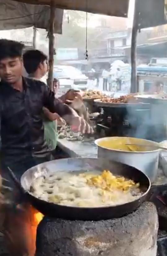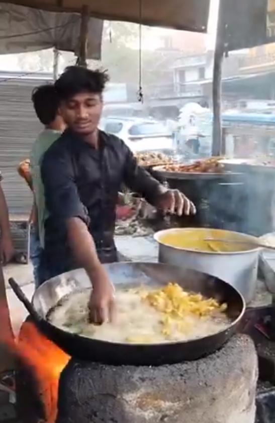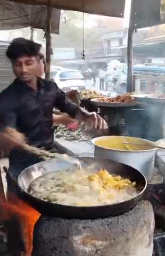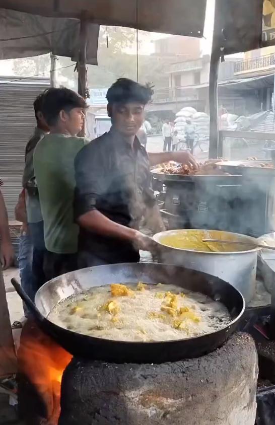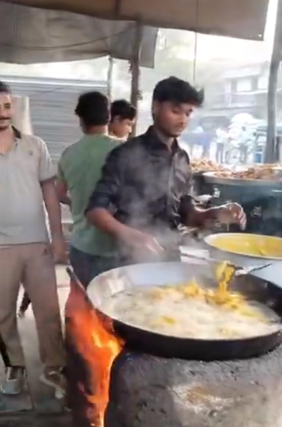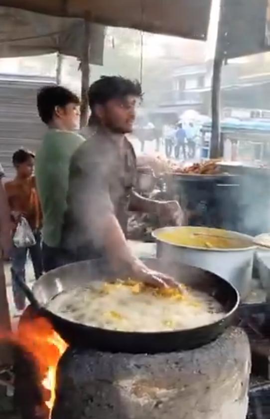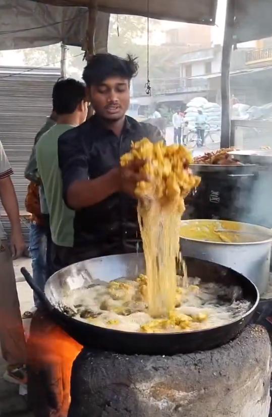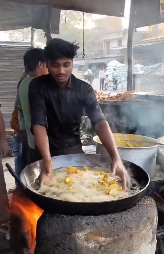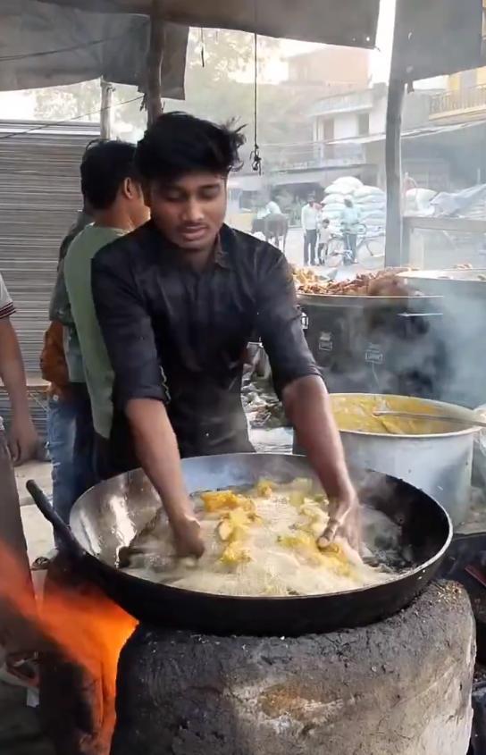 一段在网络上疯传的视频,视频中一位印度街头小贩在把手放到一桶里后将裸手短暂浸入沸油中,取出炸好的蔬菜饼(pakoras)。这是小贩们常用的无需工具即可测试油温的方法。但是令人费解,这手不会被严重烫伤吗?那油是在冒烟翻滚着的。他还特意的捞了一把油到灶里面,火苗即刻窜高,告诉你这是真的油。 据说这种做法利用了莱顿弗罗斯特效应:皮肤上的残留水分会蒸发成一层隔热的蒸汽层,从而防止短时间接触热源时被烫伤。这一原理已在物理演示中得到解释,并且自 2015 年以来,类似的现象也多次在网络上传播开来。 网友们对此既惊叹又幽默,纷纷猜测小贩们是否用了老茧或水来保护自己,这反映了全球对印度街头美食技艺的好奇。