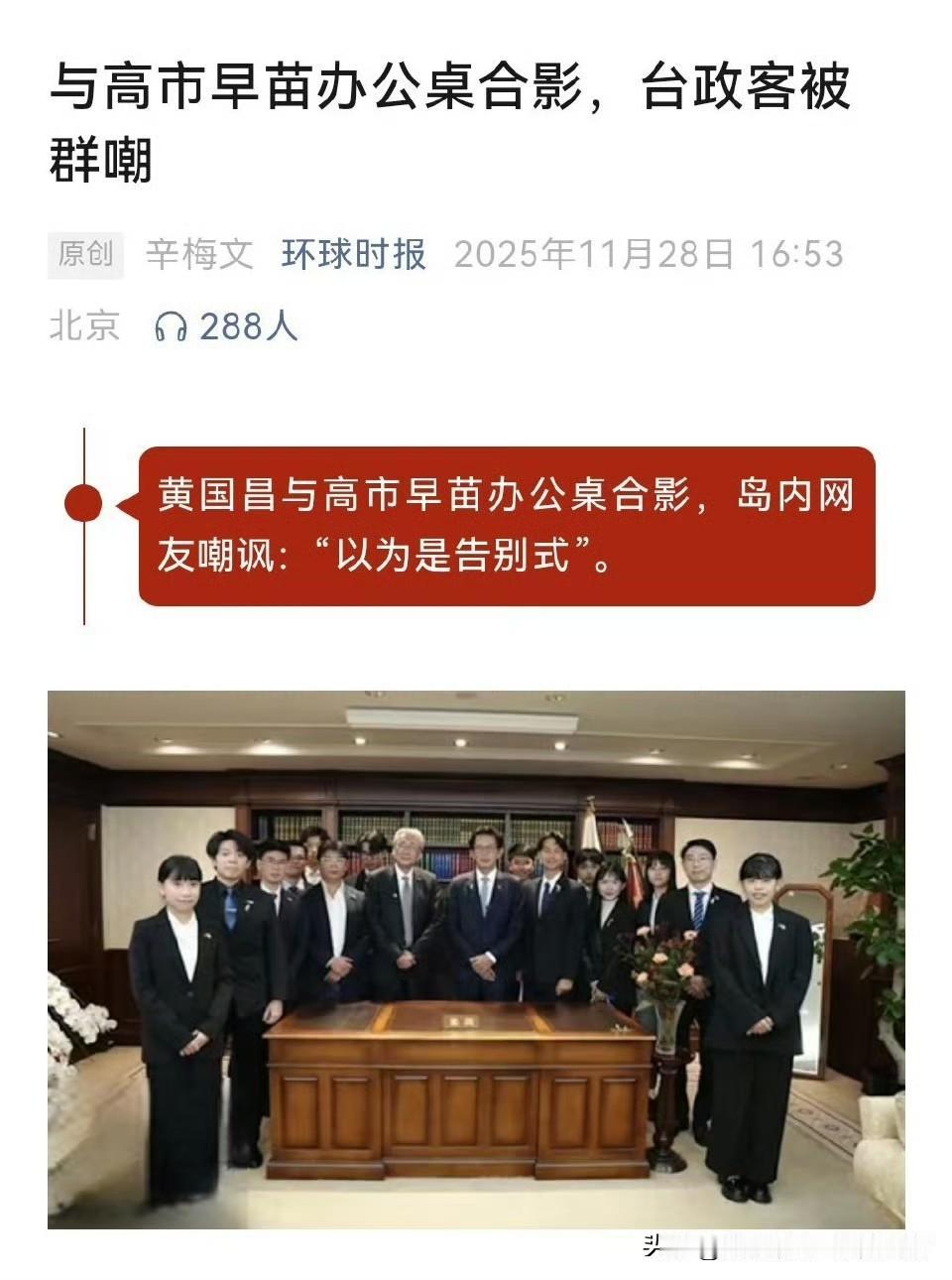 黄国昌,丑态毕露,可笑至极! 这场合影闹剧荒诞到讽刺拉满!黄国昌赴日求见高市早苗不得,竟与空办公桌合影充“外交佳绩”,活像《宰相刘罗锅》里对着刘墉坐过的蒲团奉为至宝的趋炎附势之徒,比封建时代追捧慈禧夜壶更显滑稽。这般弃尊严换虚荣的媚态,哪是外交? 说过来,说过去,不过是投机政客攀附权贵的丑态展演,既暴露了政治野心的贫瘠,更成了岛内外贻笑大方的笑料,尽显其无骨无节的本质,亏还在国外深造,不过是软脚虾而已! 奉劝台独份子黄国昌,可以把高市早苗的夜壶带一个回去,供奉在民众党,日日夜夜参拜!日本外相茂木敏充为何避谈台湾问题 日本重新武装对国际社会有何影响 日本的外交策略是否受制于美国 日本为何总在外交上挑衅中国 日本能否正视历史并改善中日关系 日本民众是如何看待日本右翼势力的 日本军事动作频频意欲何为