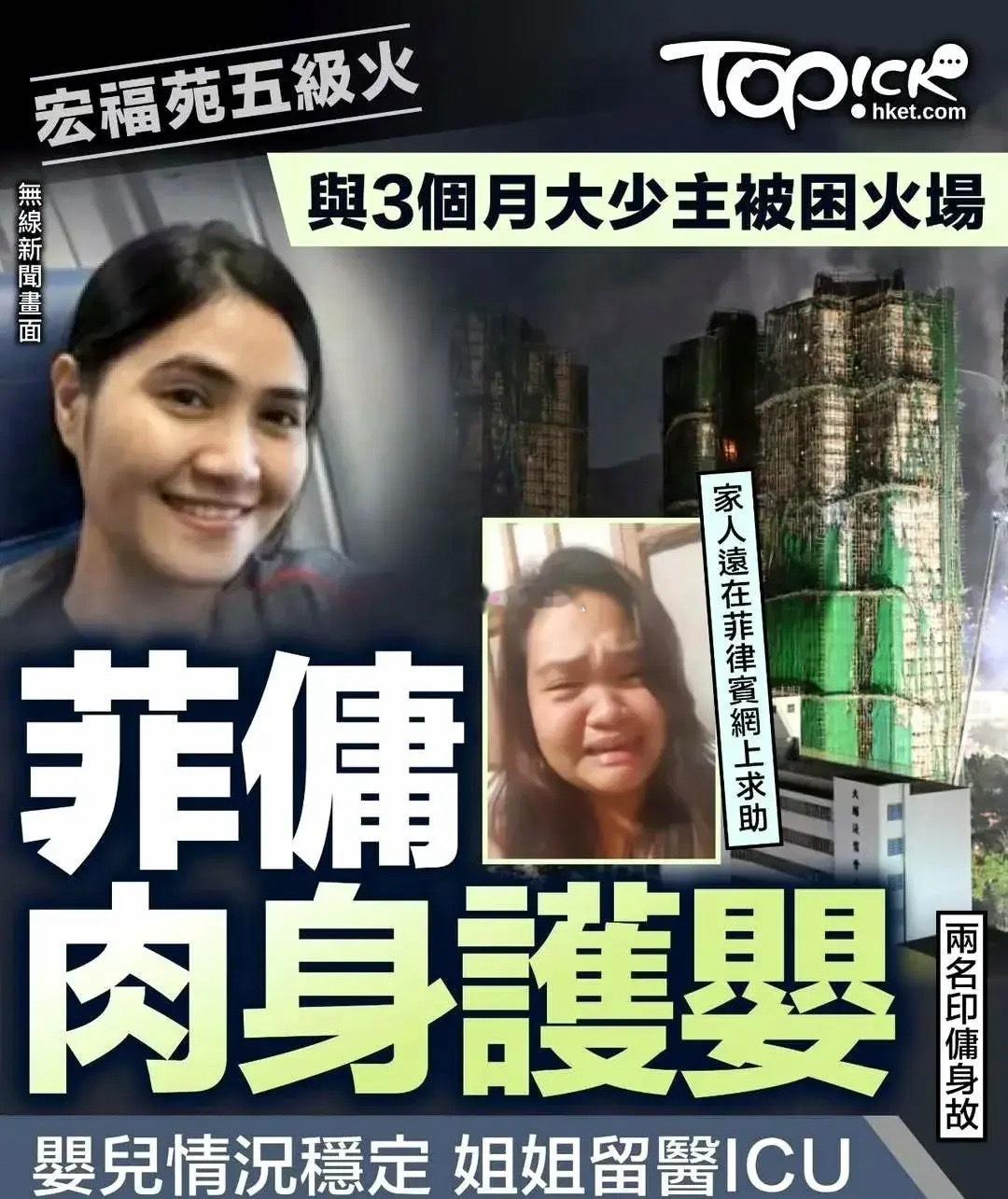 确实被这位舍命护婴儿的香港住家菲佣感动到了!雇主要给这位菲佣加薪啊!看下图,一名菲佣在宏福苑大火时被困火场,却保护了雇主3个月大的婴儿,雇主在菲律宾没有回来急得网上求助,结果消防队员发现时,菲佣舍命紧紧抱着婴儿,最后自己住进ICU,婴儿健康无碍。香港的菲佣大概有20万人,平均每7户人家就有一户聘请住家菲佣。之前在香港短住,菲佣的职业操守确实非常好,进屋都光着脚,房子都打扫的一尘不染。今天看到这位舍命救婴儿的菲佣,确实非常敬佩!