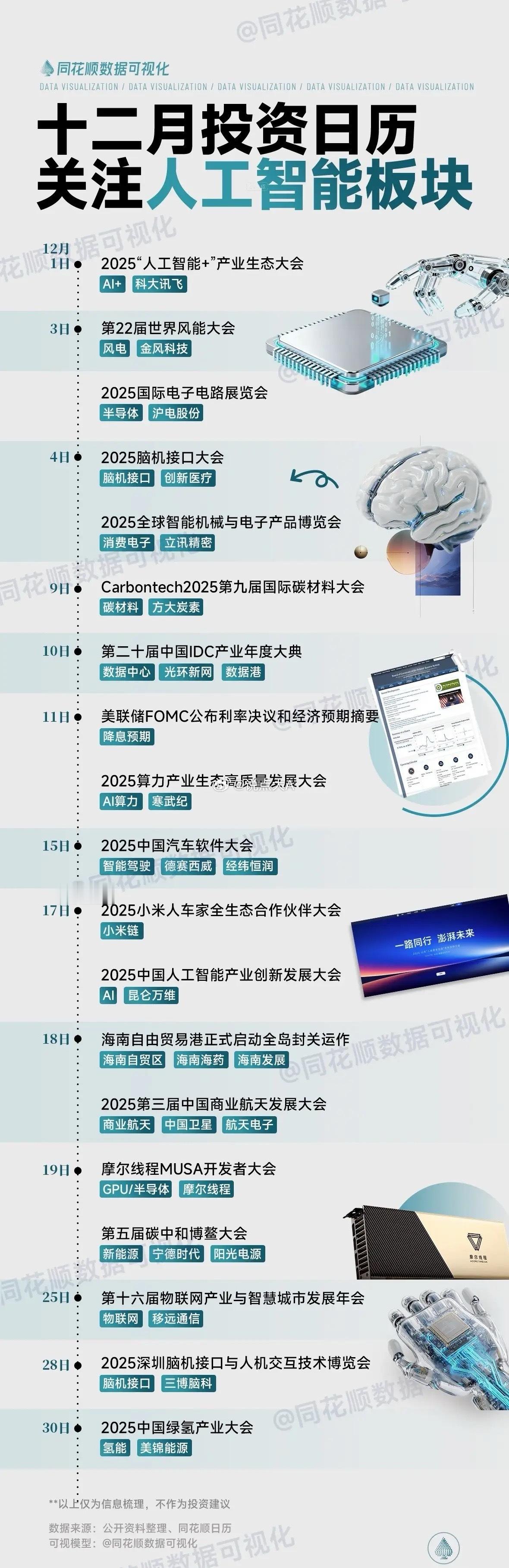 迫不及待等待开盘,A股迎来2025年度最后一个交易月份。周末消息面上热度比较高的是:商业航天公司成立!市场上周预期是看朱雀升空利好落地,因为天气原因11月28日发射推迟至12月3日。商业航天将于12月18日召开商业航天大会,会不会热度延续呢?华力创通、铖昌科技、上海沪工、天银机电、中国卫星、航天电子都是高辨识度标的,其中排名越靠前越活跃,懂的都懂…12月开始为跨年行情谋篇布局,去年是跨年“龙”股,年后Deepseek横空出世!今年“马”字能最后冲刺吗?今年整体看延续了去年但更弱一筹,马子断断续续炒了大半年了,Ai应用也是和谷歌呼应的阿里巴巴和字节跳动。字节没上市关联公司是万兴科技,豆包这条线逻辑也可以;阿里恒生电子、安恒信息老生常谈!