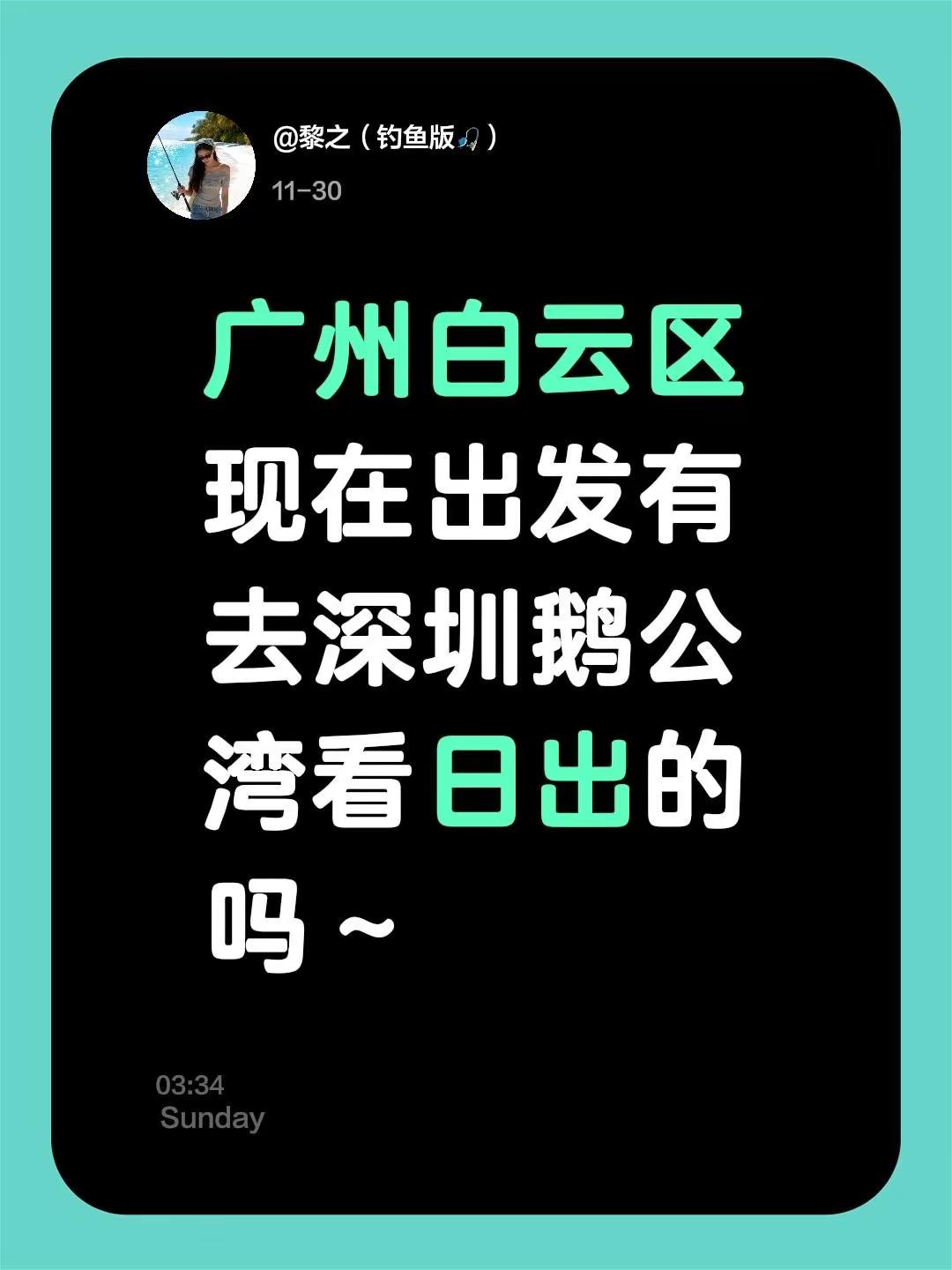 广州白云区现在出发有去深圳鹅公湾看日出的吗~