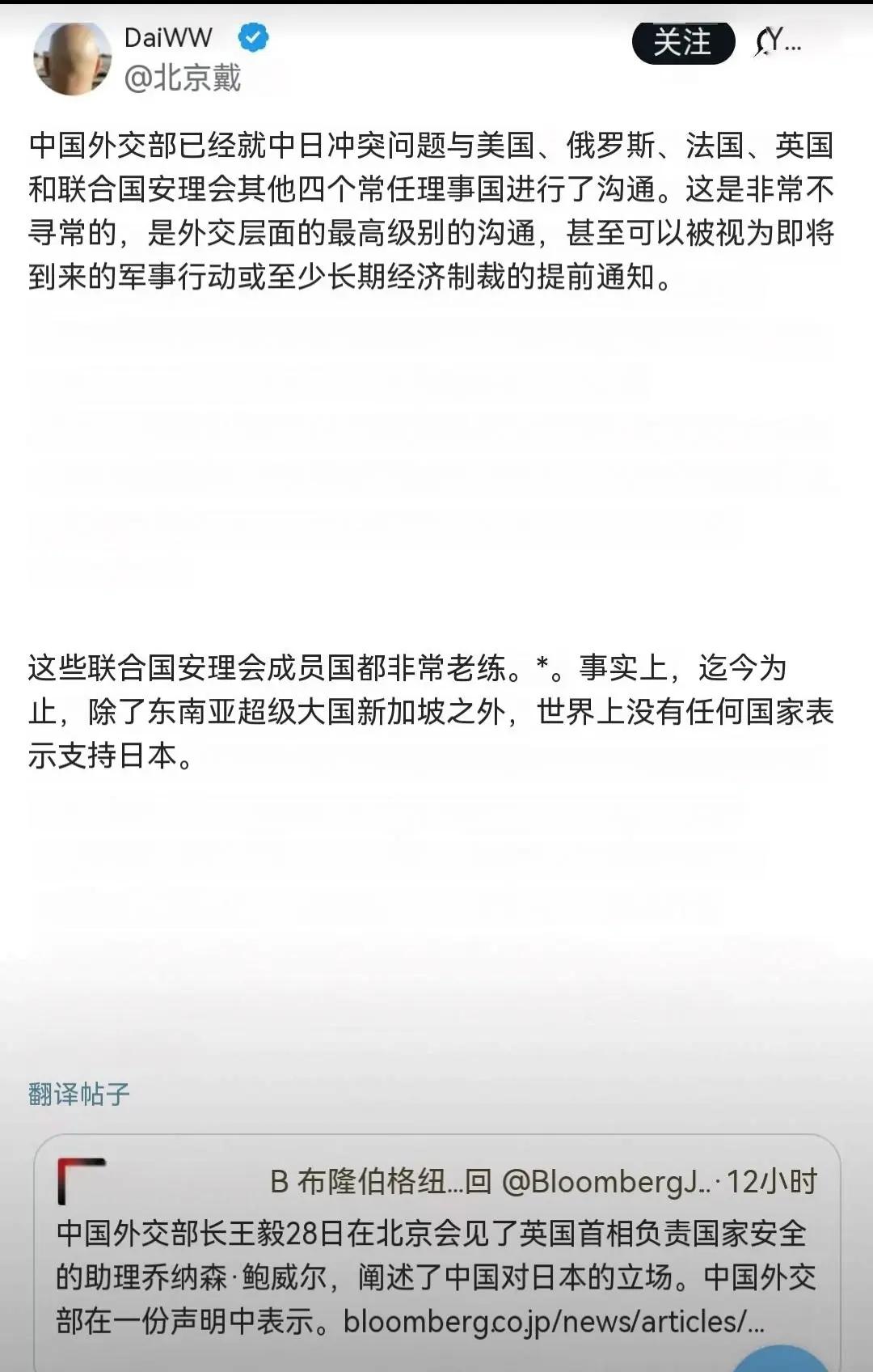 可能到今天搞事毒苗都还很迷糊,本以为自己只是随口一说,结果突然发现自己把天捅破了。 现在五常虽然没有一起开会,但中国都通知到了。 美国人自己就越日本头顶外交打电话过来了,中国和他们叙了一下旧,要记得我们二战是盟友,现在的国际秩序是我们的胜利果实,是我们一起建立和维护的,现在日本不服气想要掀桌子,你们自己看着办。 俄罗斯10天之内3批日本,内容几乎和中国一个模子刻出来的。 法国人说,我们坚持一个中国原则没有改变。 英国人被通知了。英国首相明年年初要来访问,现在已经告诉他们要捍卫我们二战共同的成果。来之前肯定表态支持,已是板上钉钉的事。如果英国人不同意,那么他们将可能就再也没有比现在更好的政治地位了。 好了,现在大家都清楚了,日本鬼子想要破坏我们的胜利成果。 我决定干他。 如果赞成,那么我们五个一起维护我们共同的胜利成果。 如果反对,那就是支持日本想要重建世界新秩序,那么我们就自己创造新的胜利成果,到时候分享胜利成果的还是不是你们,那就不一定。 现在我话已说完,你们谁赞成谁反对? 点右上角关注我,我们一起去看这个魔幻的世界