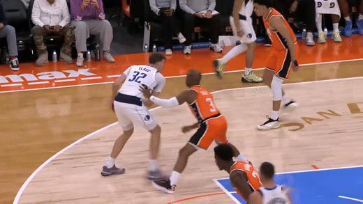 弗拉格今天打快船生涯最高35分,昨天对湖人生涯最高11助攻。连战洛杉矶双雄,两张答卷不同。今天弗拉格开场欺负哈登,说实话胜之不武:哈登本不以横移见长,年纪又大弗拉格一倍,年老不以筋骨为能,挨不住年轻人锤。图1弗拉格开场面筐突哈登,看哈登提前移动堵他,于是弗拉格突一步变向,借鲍威尔掩护到中路,顺步跳投,很老派了。这一球大概让弗拉格看出哈登破绽,上半场不止一次拉球闪过哈登,左手上篮;下半场开始,弗拉格更过分:图2一个拉球突破,径直突破篮下砸扣。换个其他人欺负呢?图3保罗换防弗拉格时,弗拉格调整步伐,突,但保罗何等的铁门槛,当年连杜兰特都挡得住;弗拉格突一步未遂,立刻放弃,后转身,左肩投篮,转体滞空跳投。——莱纳德看了,一定眼熟:这不是我擅长的么?重心高横移慢的哈登,用突破。个子矮的保罗,用翻身。如果莱纳德来对弗拉格呢?图4弗拉格右侧走位,跟鲍威尔一个递手摆脱莱纳德,急停前倾投篮——这是三年级杜兰特对付阿泰斯特的招式:阿泰斯特201公分龙爪手铁下盘,但稍微吃掩护。莱纳德201公分龙爪手铁下盘,但稍微吃掩护。然后是图5右翼略一抬手,晃飞莱纳德左手突破。按说莱纳德积年成精,十年前就是年度防守了,怎么会吃这种假动作?弗拉格接球前有个跳步。——杜德利还是谁,说科比当年最喜欢“跳步接球瞬间脚尖对准篮筐,此时做投篮假动作随时可以化假为真”,弗拉格这一招就做得十足。下半场,莱纳德主动换防弗拉格,让哈登老哥们去歇会儿。图6弗拉格又一次试图强攻莱纳德,又一次——一如之前对保罗似的——挡不开;右肩翻身假动作,连两个假动作,吃住莱纳德节奏,找到打板点,2+1。如果说此前是靠走位和晃动骗到,那这招是实打实,单吃了莱纳德。然后就是比赛结尾,独行侠99比100落后的绝境,状元出来接管:图7叫掩护挡住巴图姆,面对祖巴茨的换防,内外假动作,摆脱一线空挡,高跳中投,101比100反超。突哈登那几下,还能说是靠年轻腿快能跳。但转保罗、晃莱纳德、扛莱纳德、投祖巴茨,都是实实在在的基本功、硬对抗和高球商。莱纳德防守也不在巅峰了,但对付大型前锋依然有心得:弗拉格依然吃到了他。昨天对湖人11助攻,有一个球绝妙:图8反击中面对八村,吸引艾顿注意,于是击地传球给插上的浓眉扣篮。击地好躲过艾顿,他给浓眉传球瞬间,湖人内线的里夫斯恰好走开,去跟克雷了。他还不是一个卓越的创造者,没法像昨天的卢卡似的,持续靠运球突破吸引夹击给队友制造空位,但他肯传球也能看得到大局。昨天在勒布朗卢卡里夫斯面前11助攻秀了传球;今天在莱纳德保罗祖巴茨这几个老防守专家面前秀了得分。还是那句话:弗拉格不是毁天灭地的天才,但是个没啥坏习惯、基本功扎实、努力打球的好孩子。还有三星期满19岁。弗拉格35分生涯新高独行侠vs快船