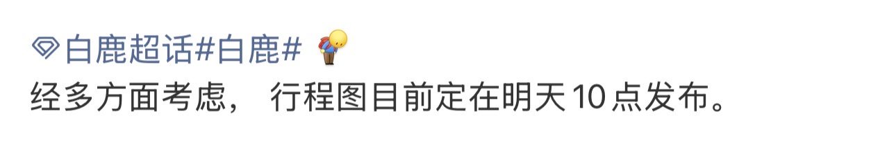 白鹿12月行程图暂缓发布 经多方面考虑,行程图目前定在12月1日十点发布。