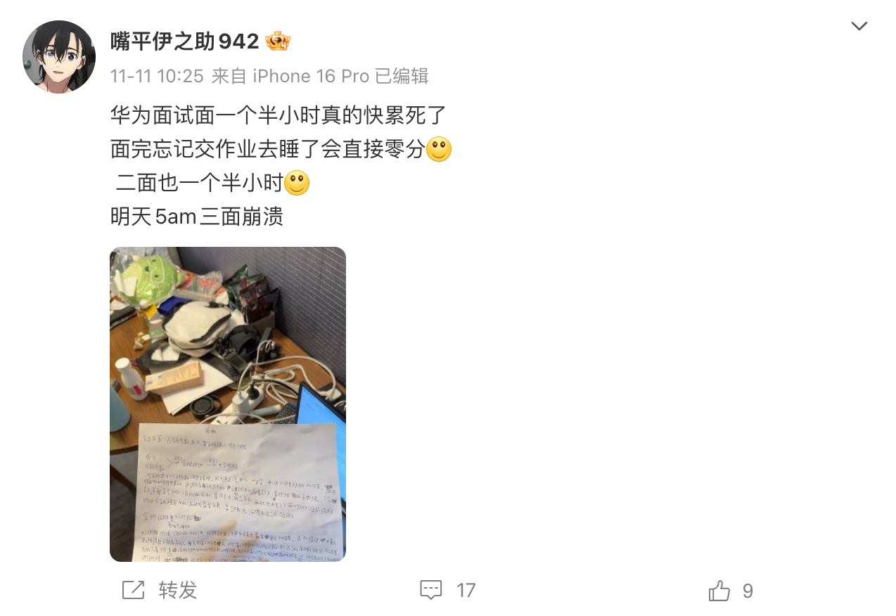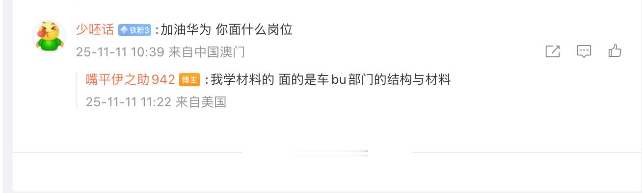 一边骂华为,一边挤破脑袋想着进华为。这人太典了。我是想不明白这人是什么脑回路。我看是学材料,面的刚好是车BU部门的结构岗,我这边是建议华为最近要重点关注来自于海外的面试者。尽可能查下对方的社交平台发言。