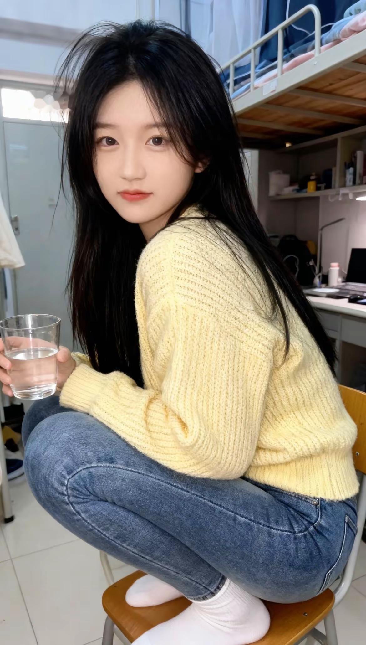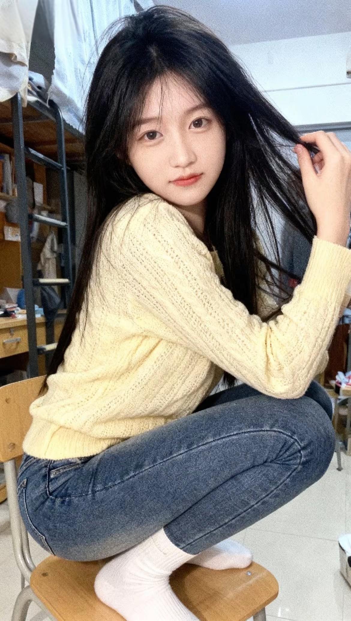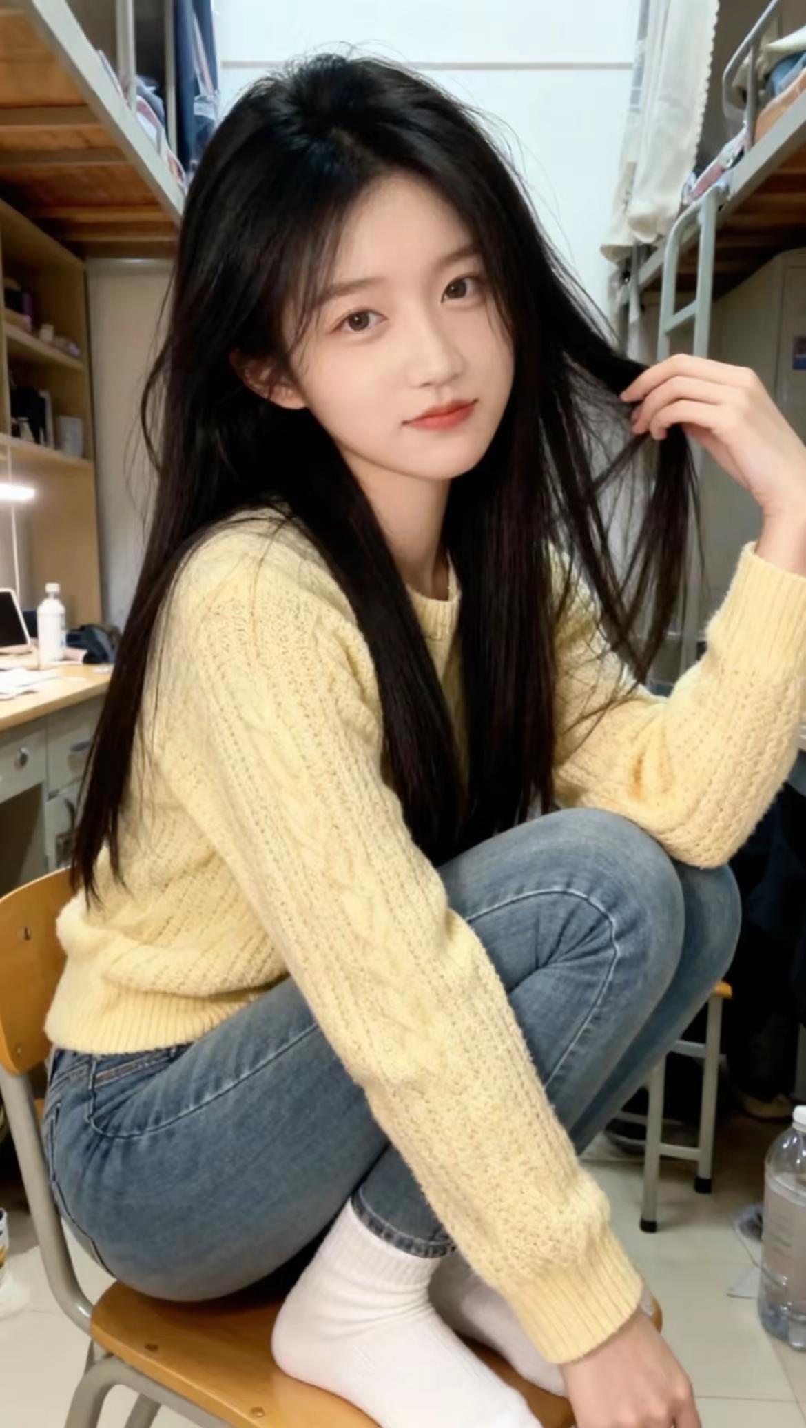 宿舍自拍系列。休闲款 休闲服女 拍照 宿舍