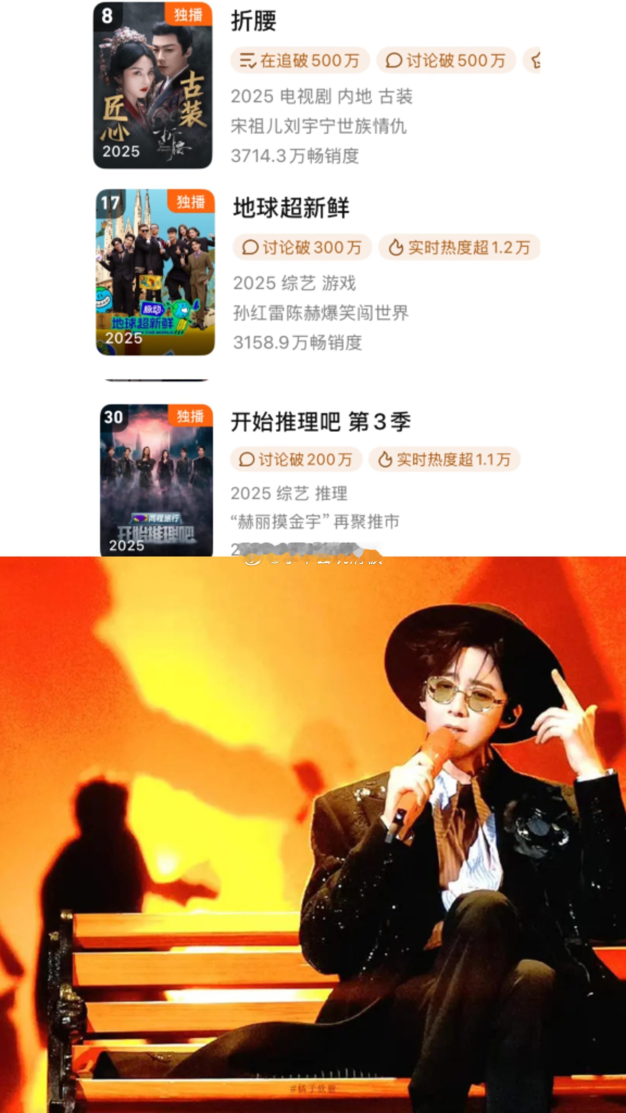 腾讯视频拉新年榜,刘宇宁三部作品均上榜,做演员做歌手都很成功。
