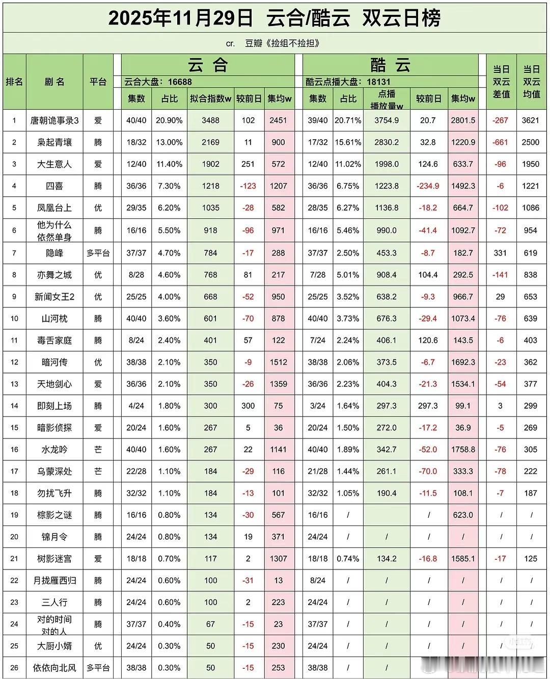 唐诡3真厉害,逆跌了。大生意人还是很不错,虽然增长幅度不算大,但是稳定增长。