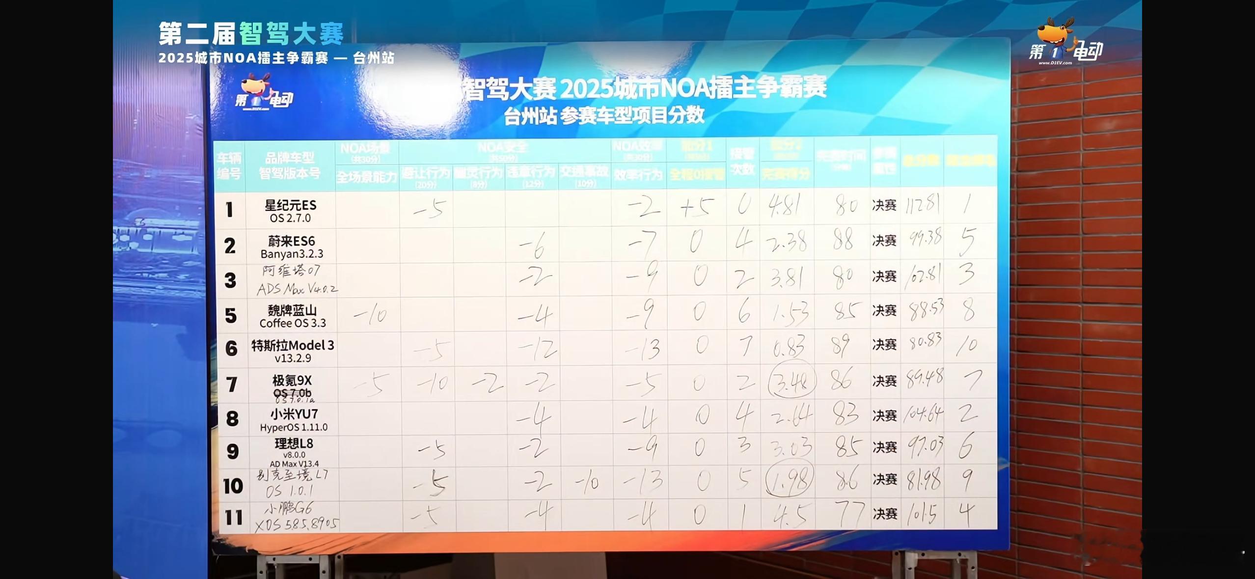 第二届中国智驾大赛 最终成绩出来了。星纪元ES第一,小米YU7第二,阿维塔07第三。截不到好的视角图,很无语。(编辑一下,后补一张不遮挡的图,但曝光依然严重,凑合看吧)新能源汽车