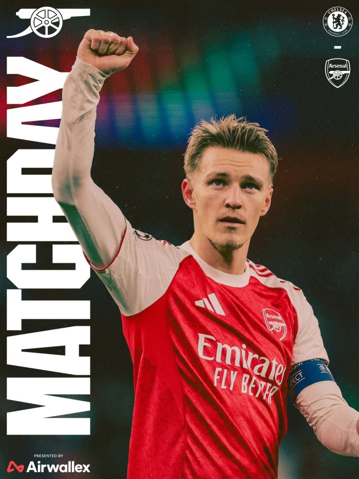 焦点对决!切尔西、阿森纳官推晒海报,切尔西福法纳、阿森纳厄德高单人出镜。