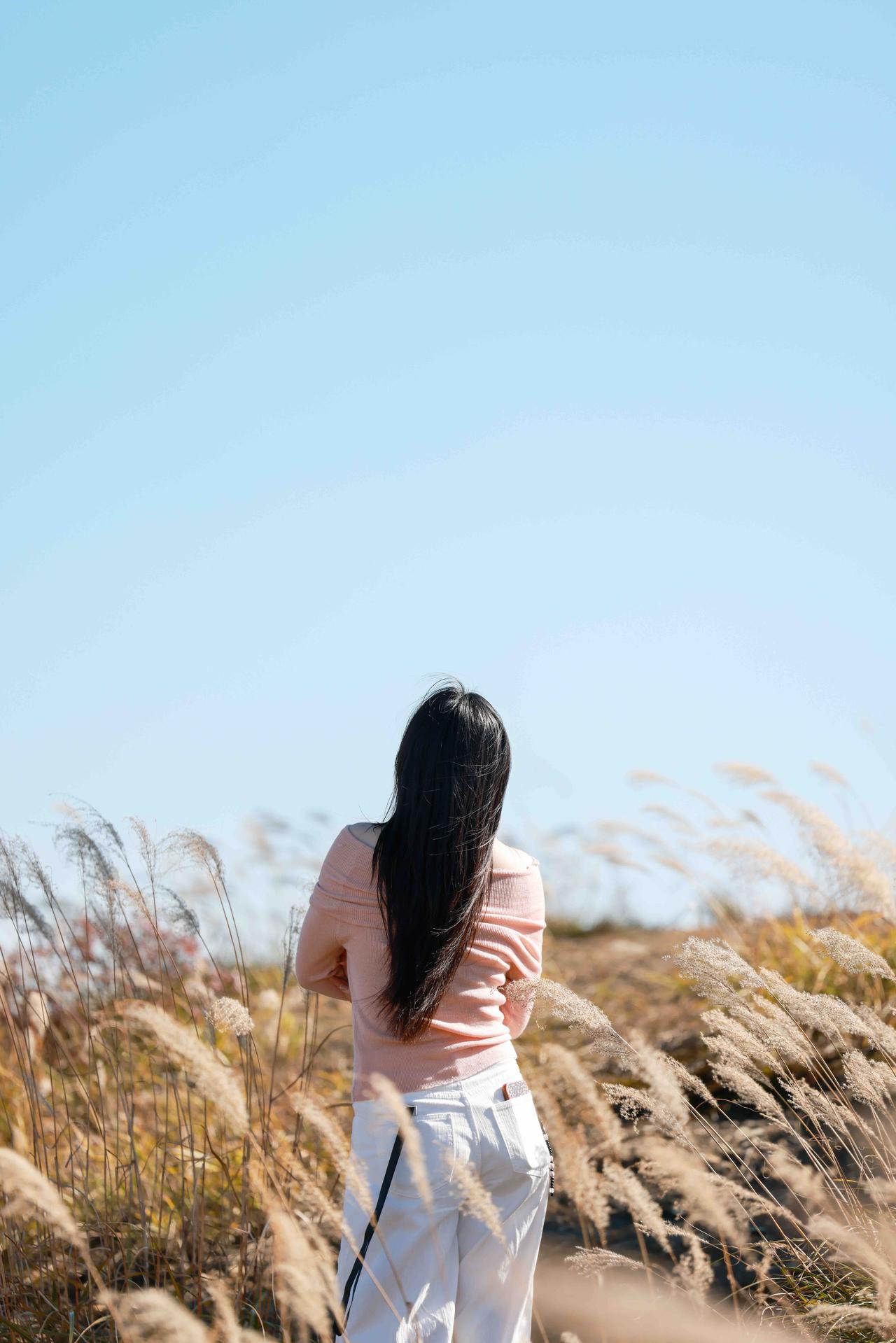 风把秋草吹成一片蓬松的金,蓝天是最干净的背景板——这大概是秋日户外拍照最舒服的状态。 不用盯着镜头硬挤笑容,像她那样侧身站进草穗里就好:露肩衫的软粉色揉进秋阳的暖,白裤子的干净衬着草秆的野,随手碰一碰晃到指尖的穗子,风会替你撩动发梢。不用刻意凹姿势,背影里的松弛、指尖碰草的轻,都是镜头该接住的「恰好」。 拍照从不是摆出来的完美,是让自己掉进当下的风里——草晃一下,快门按一下,就把秋天的软和自己的懒,都封进照片里了。秋天氛围感图片 户外自然风拍照