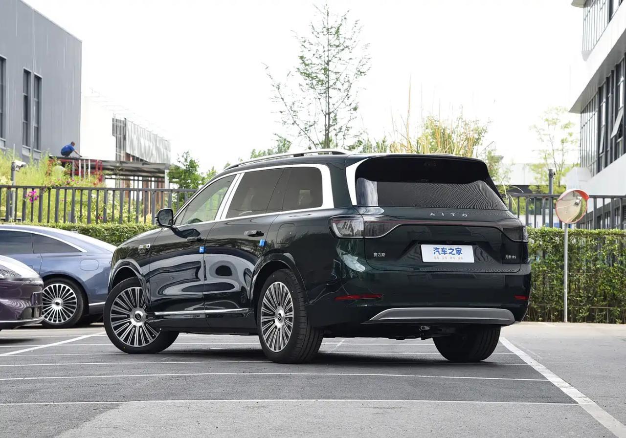 2025款问界M9 官方核心信息 2025款问界M9于2025年3月20日上市,定位豪华大型SUV,推出增程、纯电双动力版本共7款车型,提供5座、6座及尊四座可选,官方指导价46.98万-56.98万元,部分购车权益含增换购减免、功能包补贴等。车身尺寸为5230mm×1999mm×1800mm,轴距3110mm,风阻系数0.264Cd,新增金瑞红双色车漆,标配贯穿式LED灯带与HUAWEI XPIXEL智慧投影大灯,内饰搭载三联屏组合+激光投影巨幕2.0,配备智能隐私车窗、冷暖箱等配置。 动力上,增程版搭载1.5T增程器(最大功率118kW)与双电机,CLTC综合续航最高1474km;纯电版基于800V高压平台,配备100kWh级电池,CLTC续航630km,支持5分钟补能150km。智能驾驶方面,全系标配华为ADS 3.3系统,配备4颗激光雷达及多类传感器,支持全场景领航辅助与跨层泊车;底盘采用华为途灵智能底盘,标配空气悬架与全铝悬架组合,最小转弯半径5.8米。 (图片来源:汽车之家)