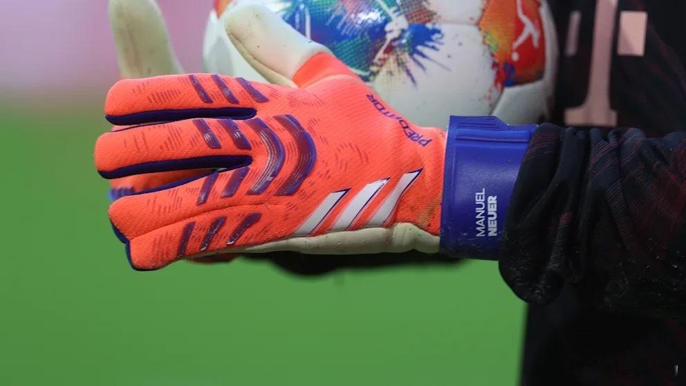为了治疗关节囊损伤,诺伊尔左手无名指和小手指被用胶布缠在一起,因此他在最近两场比赛左手套都是特制的。
