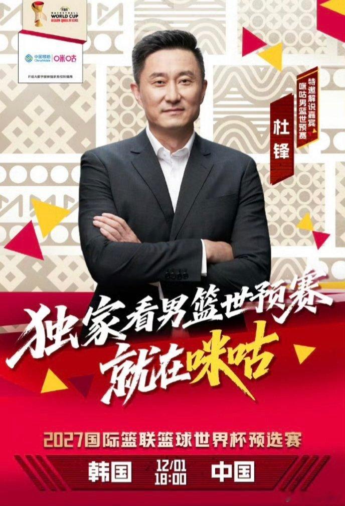 明晚杜锋指导将作为特邀嘉宾解说世预赛中韩二番战,期待!中国男篮vs韩国男篮