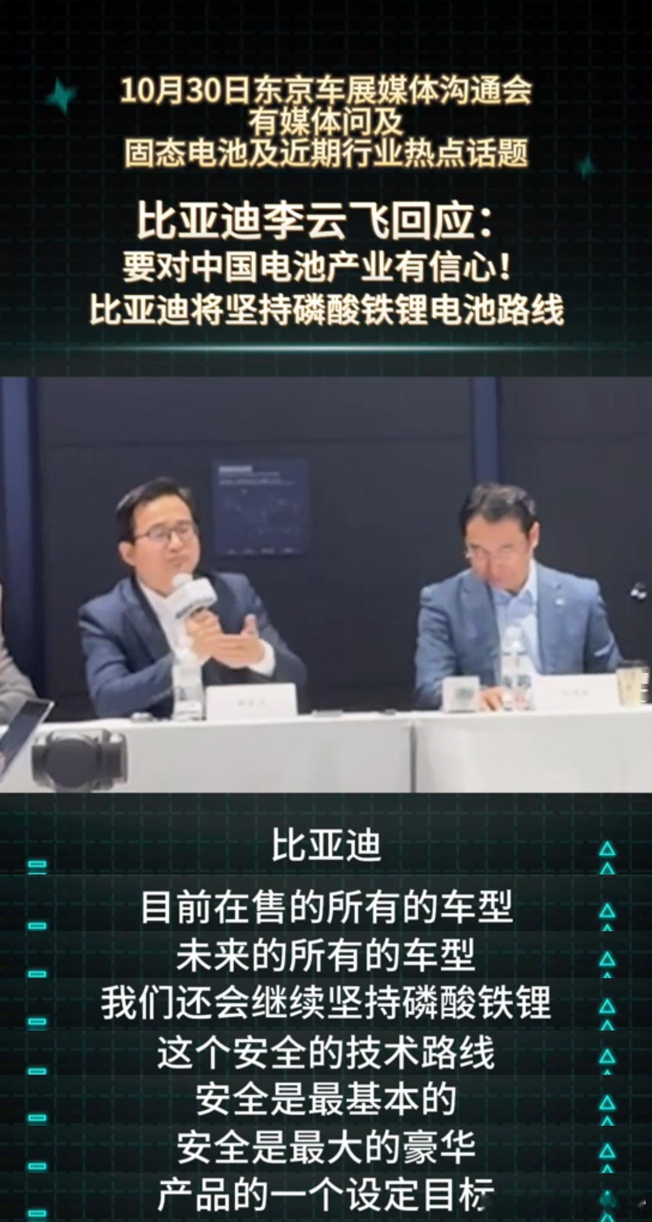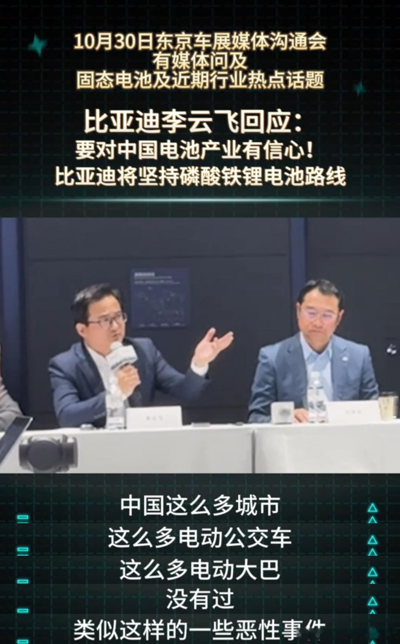 现在车企“卷续航”都快卷疯了,动不动就八百一千公里。比亚迪李云飞最近说了句大实话,感觉有点“泼冷水”的意思!他说,不管你是谁家的车,只要烧了一台,在老百姓眼里,就是“所有电动车都不安全”。这等于一颗老鼠屎坏了一锅汤,所有人都得背锅。比亚迪一直促进动力电池行业发展,因为为了安全,所以“死磕”磷酸铁锂电池路线!他举的例子我觉得还挺有道理,国内的电动公交车,塞满五六十人那种,跑了15年了,用的全是磷酸铁锂,你听过出大事吗?没啊。公交车都不敢马虎,私家车上虽然人少,但命一样金贵。他最后那意思我听懂了:大家别光顾着拼那个续航数字,万一为了续航用了不那么安全的电池,出了事,大家一起玩完。这话说得挺狠,但确实是这个理。