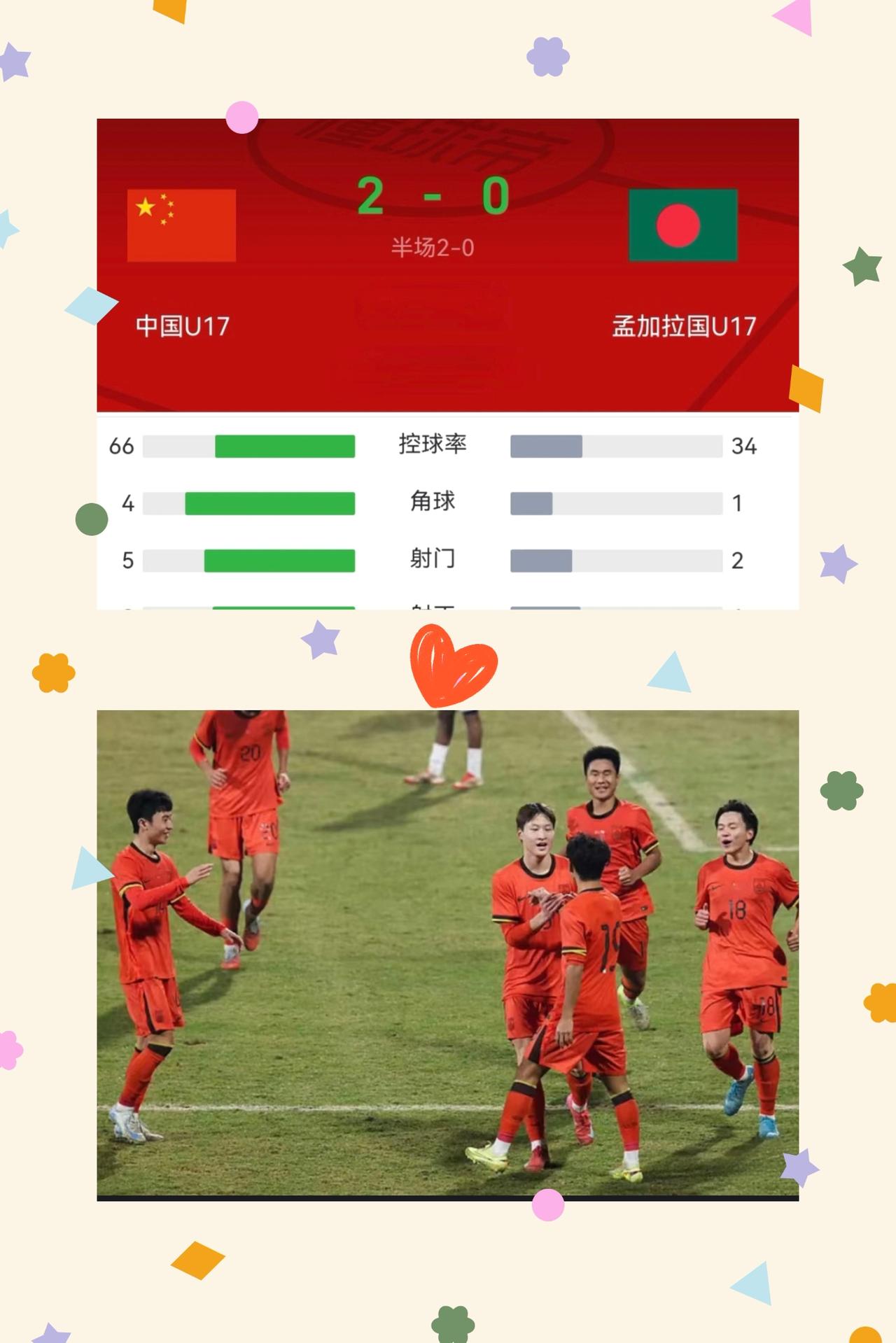 太燃了! U16国足半场2-0碾压孟加拉国, 这波青春风暴太顶了!帅惟浩 梅开二度直接杀疯,邝兆镭右路突破像开了加速器,两人一攻一助的配合,看得人热血沸腾,再加上近7成的控球率,完全把比赛节奏握在手里。 别以为这只是运气好,帅惟浩和邝兆镭都是董路足球小将青训体系出来的硬茬,能在生死战(不败即出线)顶住压力爆发,恰恰说明中国青训不是空谈。这些小将不仅有冲击力,还懂配合、不怯场,比成年队的畏手畏脚强太多——青训的意义从不是一蹴而就,而是让这些孩子在大赛中练出真本事。 下半场国足能守住优势零封对手吗?会不会再轰几个球提前锁定出线?评论区来聊聊你的预测~