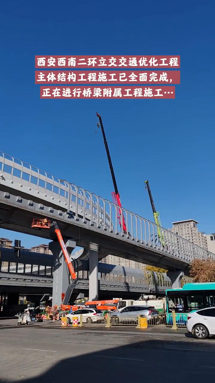西安西南二环立交交通优化工程主体结构工程施工已全面完成,正在进行桥梁附属工程施工