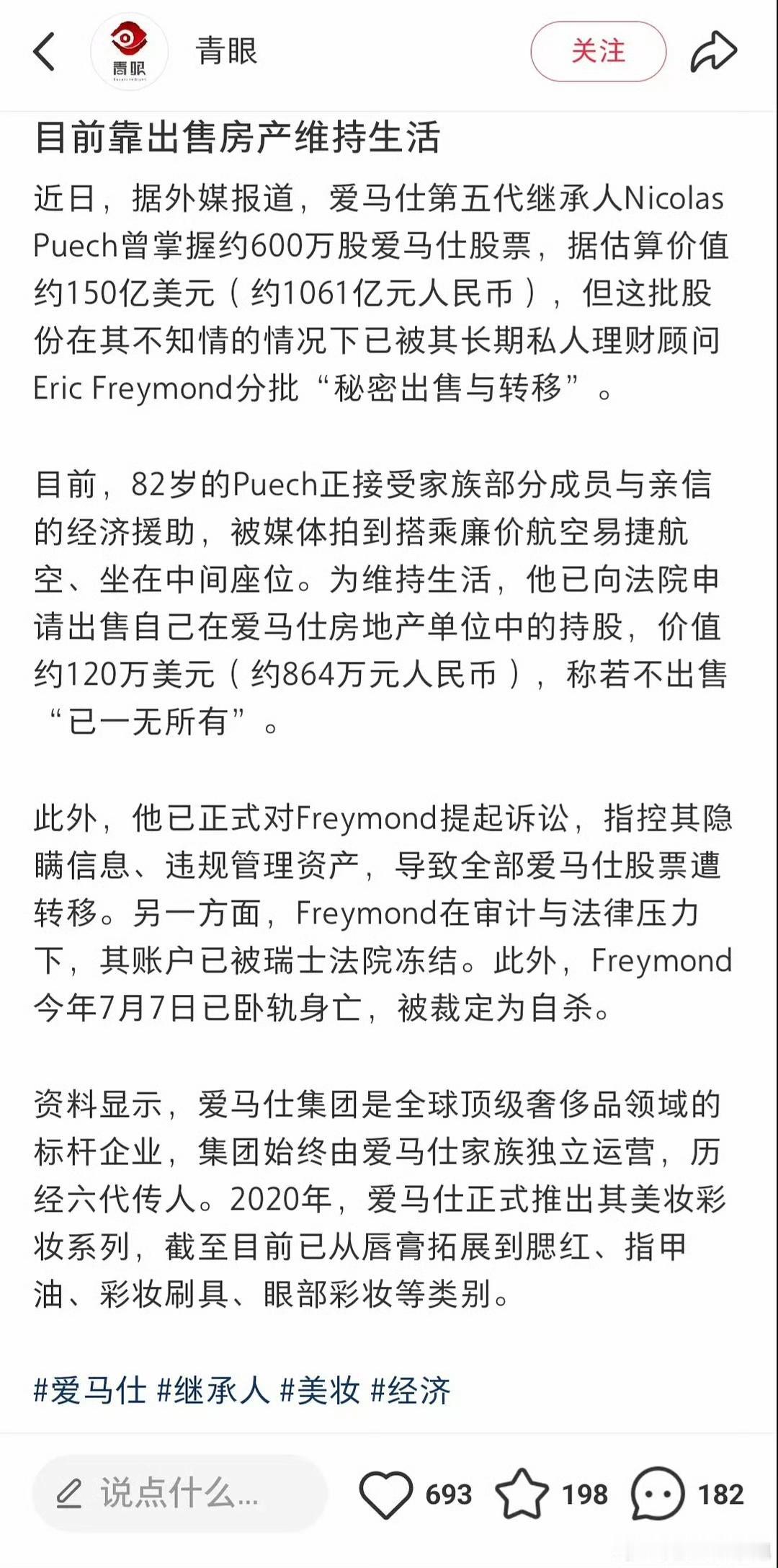 我的妈呀,爱马仕啊,后代无能,守不住财富。