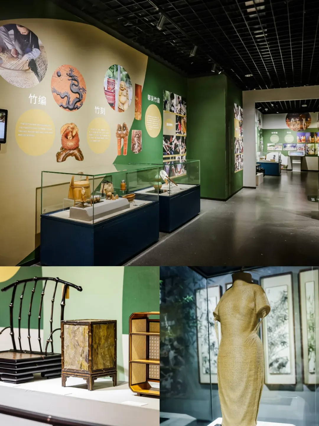 从正门进入后,依次走入识竹,知竹,用竹,趣竹板块,看到了原生态的竹,了解了竹工艺,欣赏了竹工艺品,如出竹贴画、竹编花器、鄣吴竹扇等,感叹于它们是如此的精美👏👏