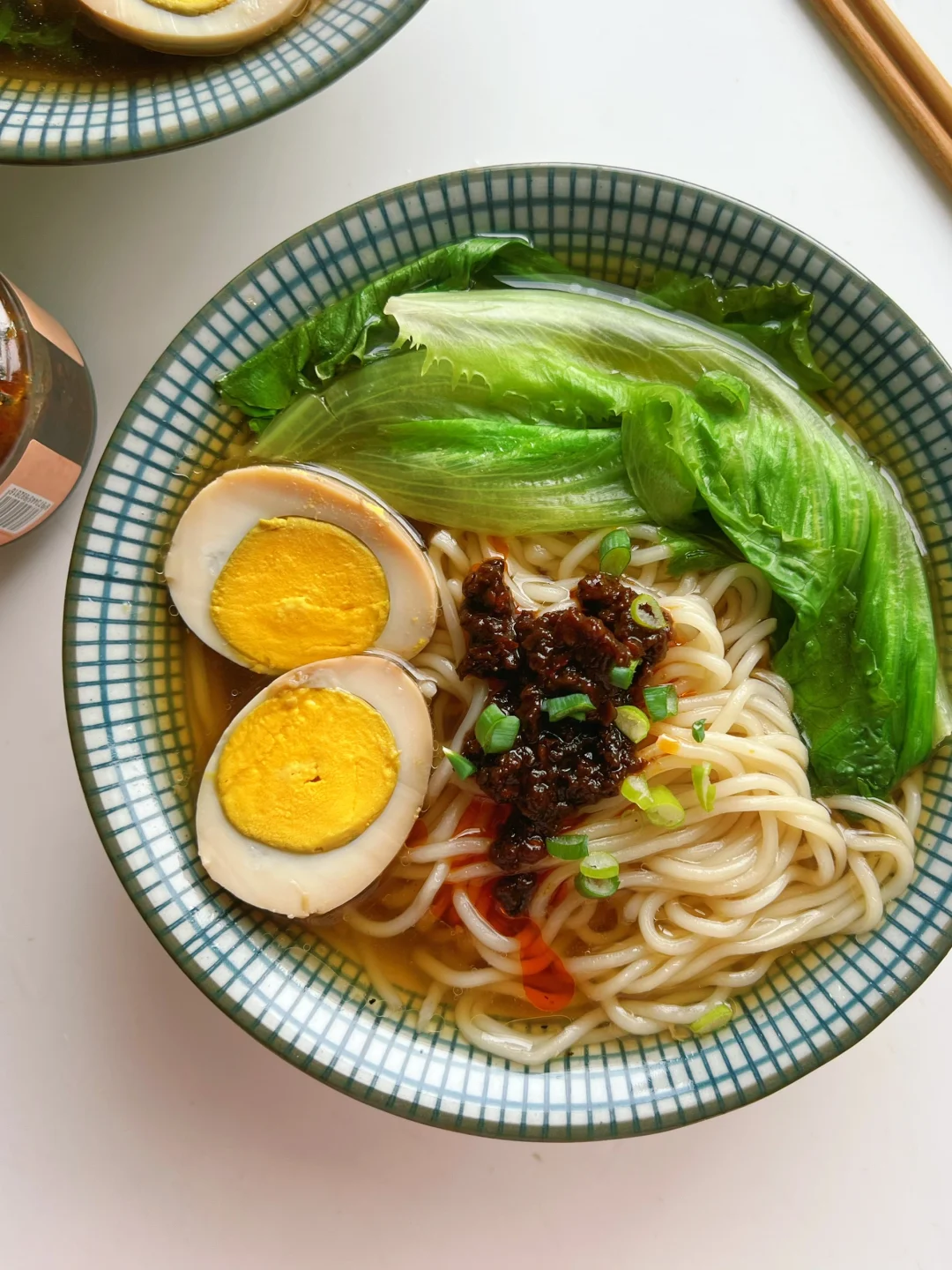 的三餐四季 昨天清明婆婆卤了几个鸡蛋 尊嘟尊嘟太好吃啦 今天要干好多活 随便下碗面条🍝吃吃 一个咸香的茶叶蛋 一勺香辣的牛肉酱 几根脆爽的生菜🥬 妈呀,没想到这么好吃👍👍👍