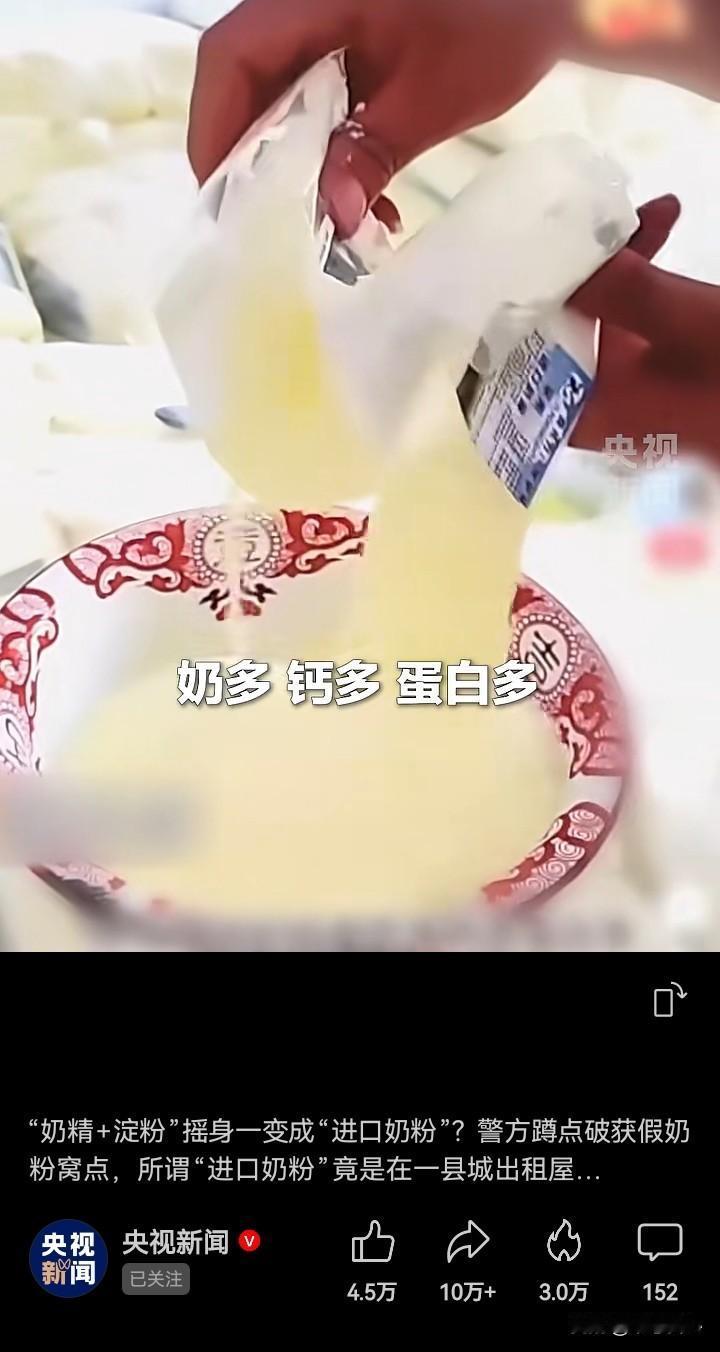 河南郑州的中牟县出名了。 原名,众多的“进口”奶粉,什么牛奶、羊奶、驼奶等等,都是在河南郑州中牟县的一个出租屋里就生产出来了,还通过各电商平台卖遍全国! 材料自然不会好,说是“奶精+淀粉”,具体什么危害我也不敢看了。 反正不良商家可能几元钱的成本,卖出几百元高价,赚得盆满钵满,关键对他们的惩罚太轻了。 记得前段时间,上海往饺子皮里加了快60斤硼砂的,甚至有缓刑! 所谓的“黑了心”,我们普通民众只有这样骂他们; 可是,监管部门也只是在事后这样骂骂,我们普通消费者就很无语、无奈了! 喊了几十年的“食品安全”,说不定哪天又发现某样食品的安全早被捅破天了……