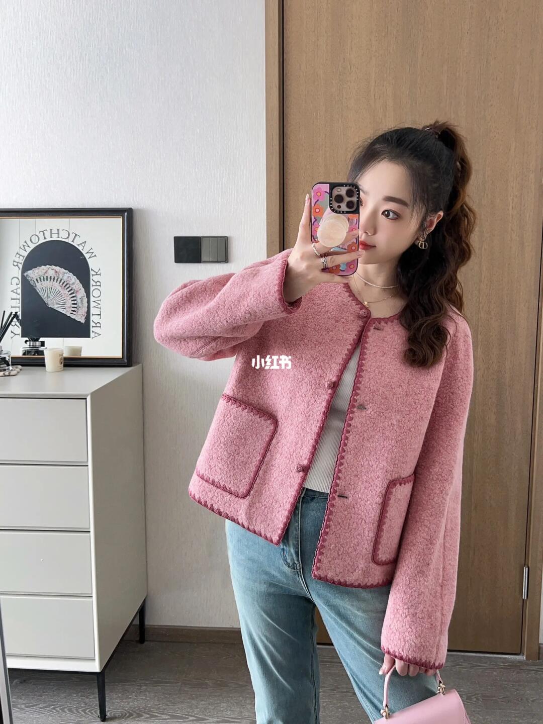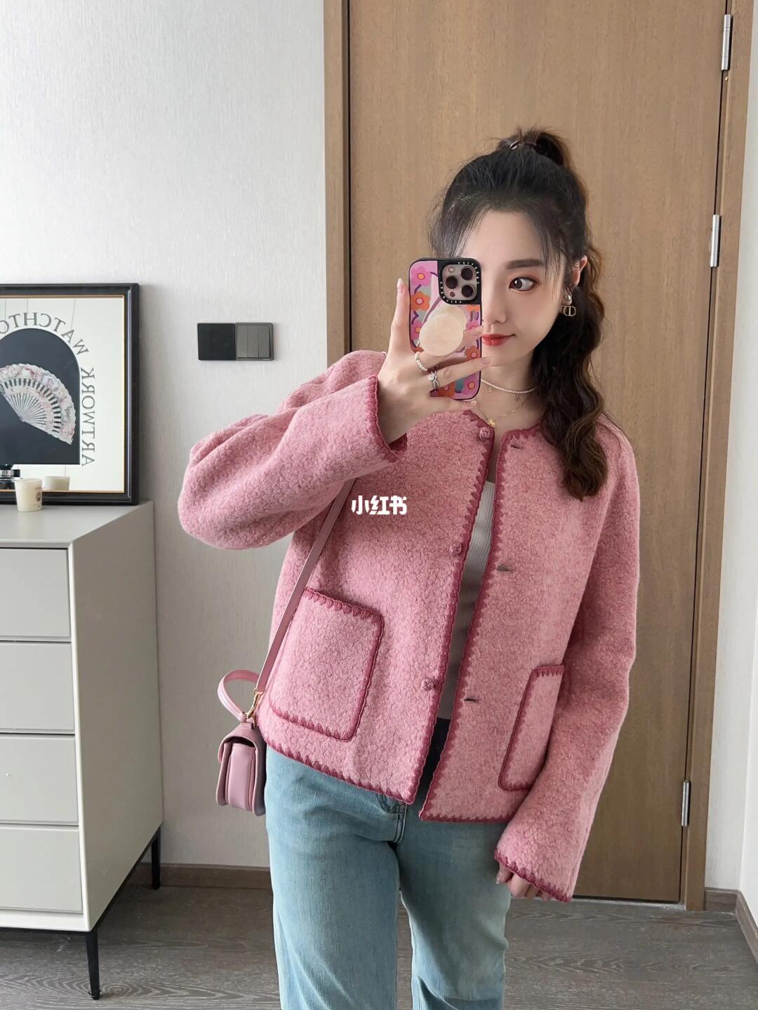 啊啊我的本命蔷薇粉小羊羔外套!这也太美唠!