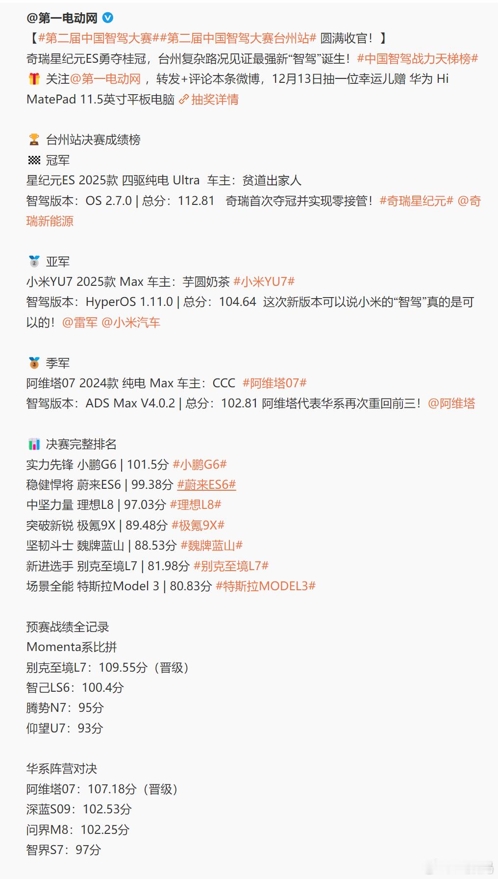 小米YU7搭载1.11.0版本,竟然拿下了智驾台州站的第二,这你受得了吗?