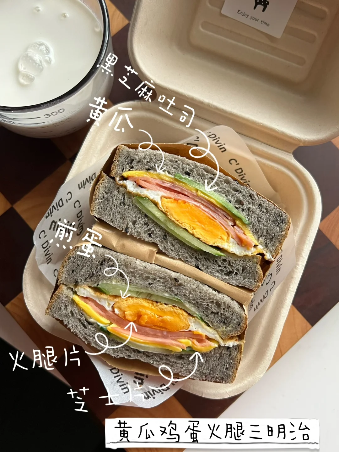 今早做了黄瓜火腿鸡蛋三明治🥪供参考!