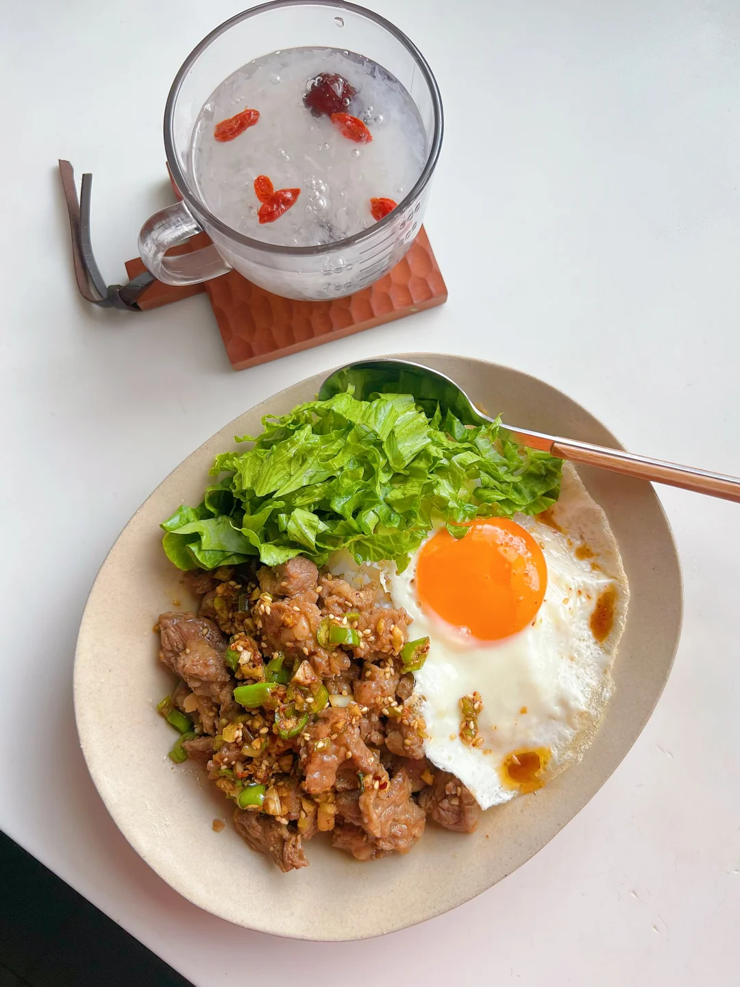 葱香牛肋条生菜拌饭,不够吃呀不够吃!