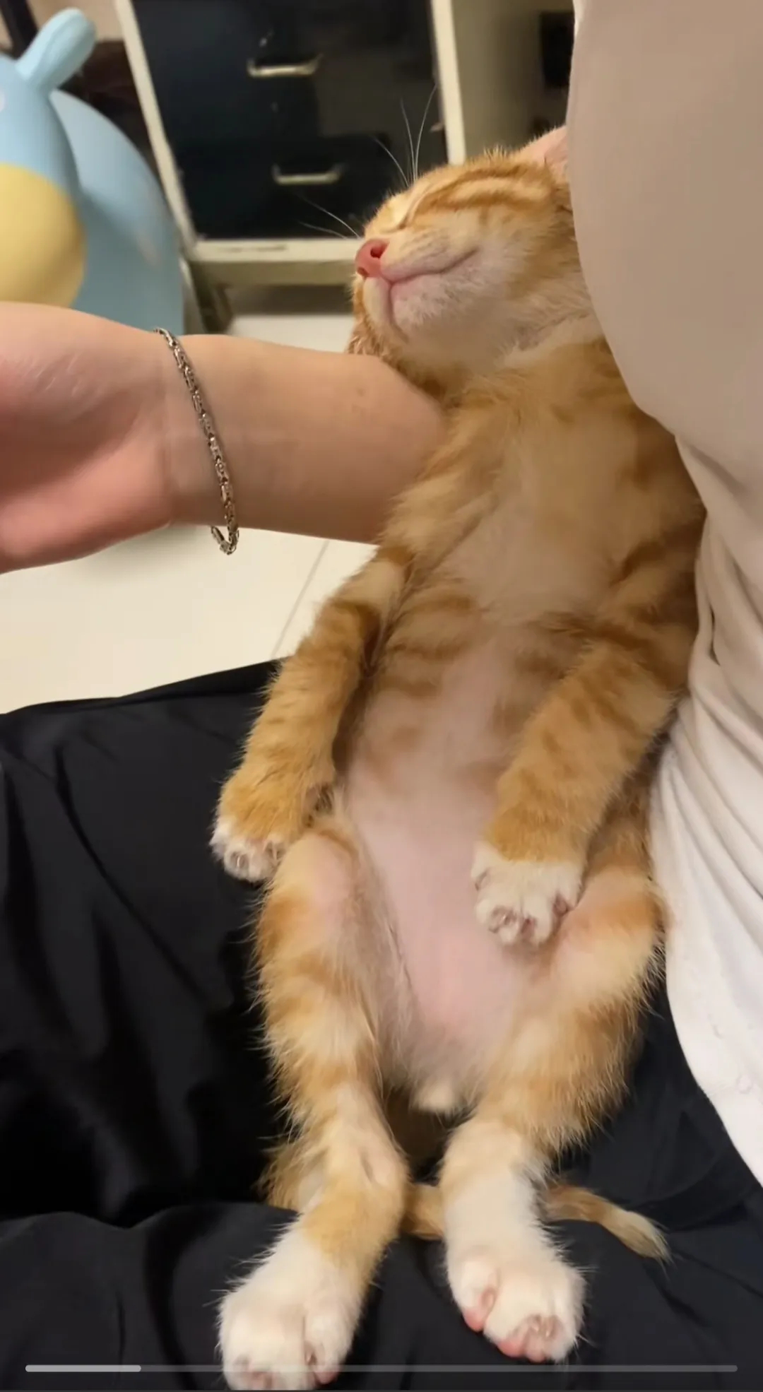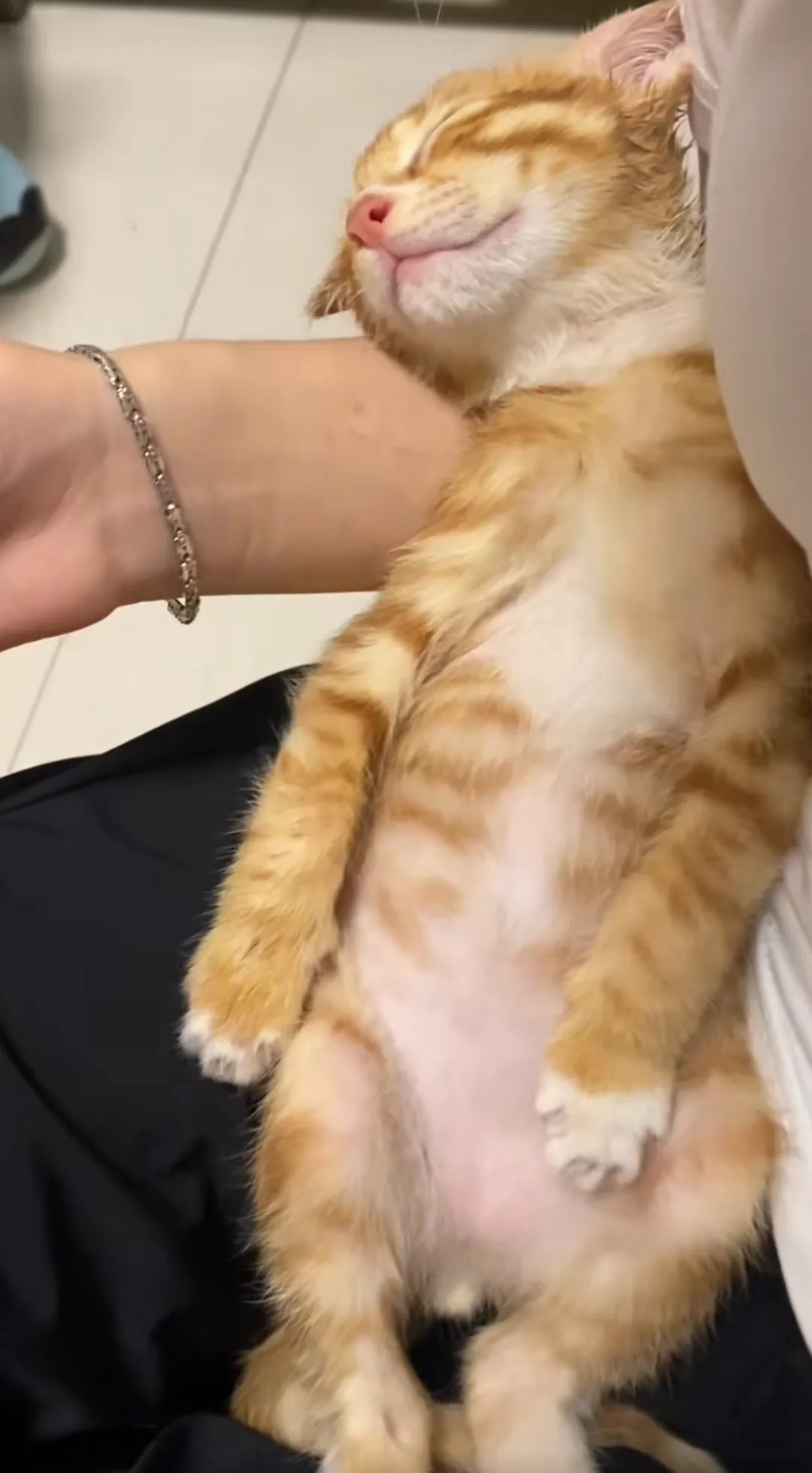 这个小可爱[呆无辜]躺在主人的怀里睡😴的好安详,还有个跳蚤陪伴着,你们看到了吗?