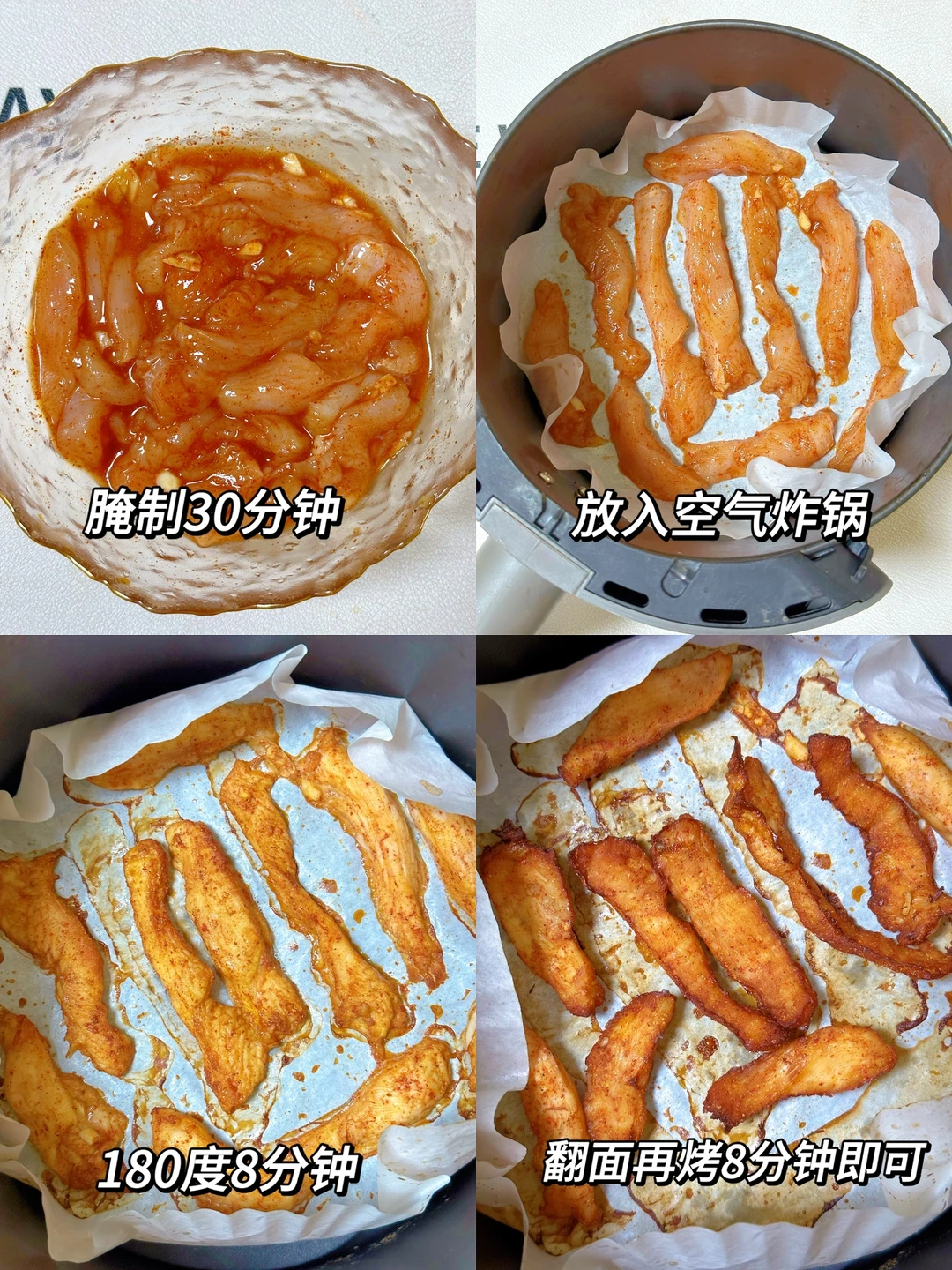 今天给姐妹们分享一道好吃的空气炸锅蒜香鸡胸肉,生菜包着吃,吃出烧烤店的味道,巨巨巨好吃,简单还掉秤!平时嘴馋😋还能当小零食 🥗食材:一块鸡胸肉、蒜末 🥘做法:看图四和图五哟 姐妹们一定要试试哟 ~~~~~~~~~~~~~~~~~ ⚠️烤鸡胸肉不要烤太长了哟