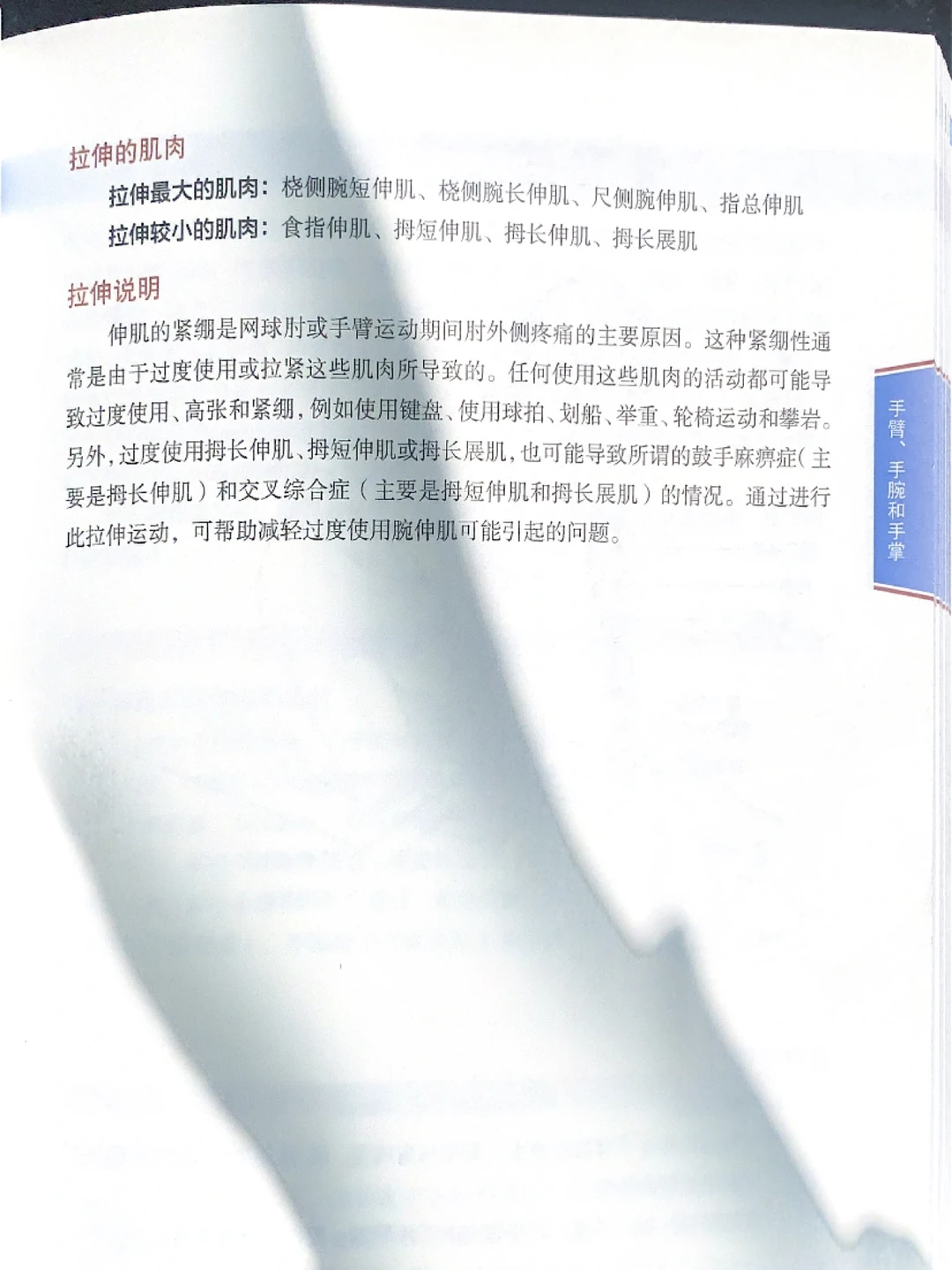 手臂、手腕和手掌7️⃣ 👉初级腕伸肌拉伸 ✅呼吸顺畅有节奏有深度 👇拉伸说明: 对于已经确定自己出现了网球肘这一症状的人,除了需要通过上面的训练来改善之外,我们更需要注意日常生活中的习惯问题,尽量不要长时间的去做同一动作,避免单一肌肉的过度劳累导致损伤。并且在工作或者日常生活中多对腕伸肌进行放松按摩拉伸,以消除或者缓解疼痛。 喜欢收藏➕关注❤️