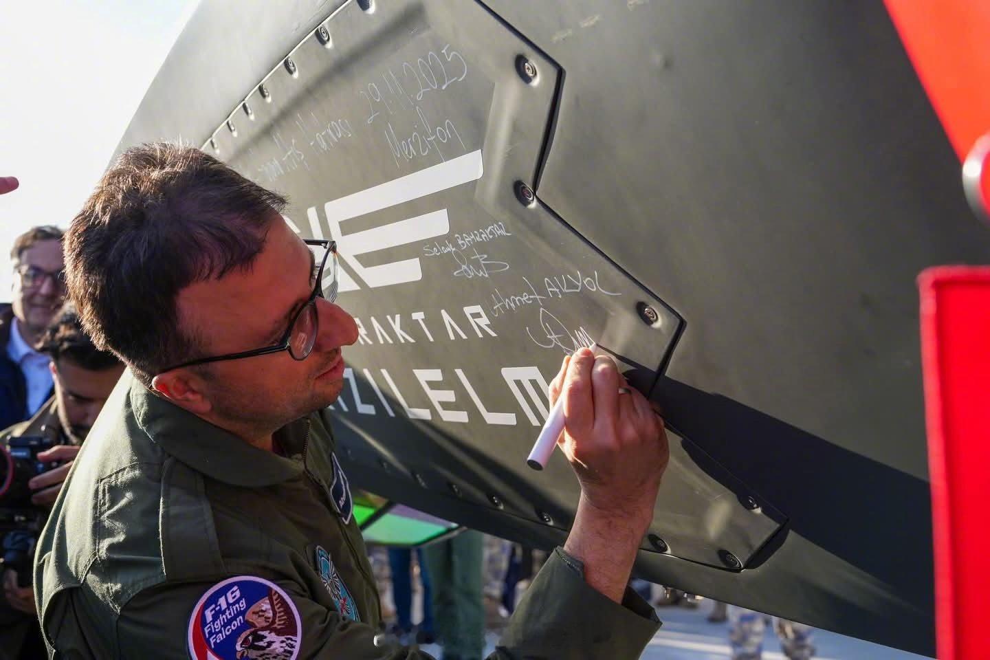 Baykar的CEO Selcuk和ASELSAN 的CEO AhmetAkyol乘坐土耳其空军的 F-16,见证Kızılelma无人机首次超视距无人发射空空弹作战这一历史时刻。