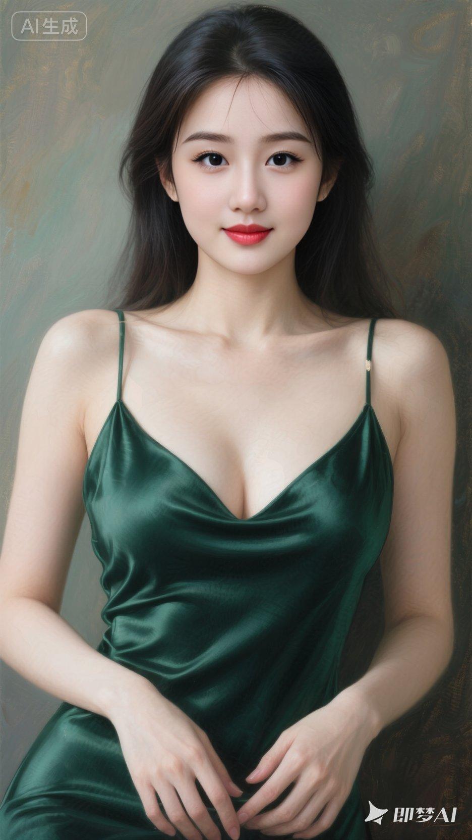 一位东亚风格的年轻女性,有着一头自然垂落的深棕色长发,发丝柔顺且有轻微的蓬松感。