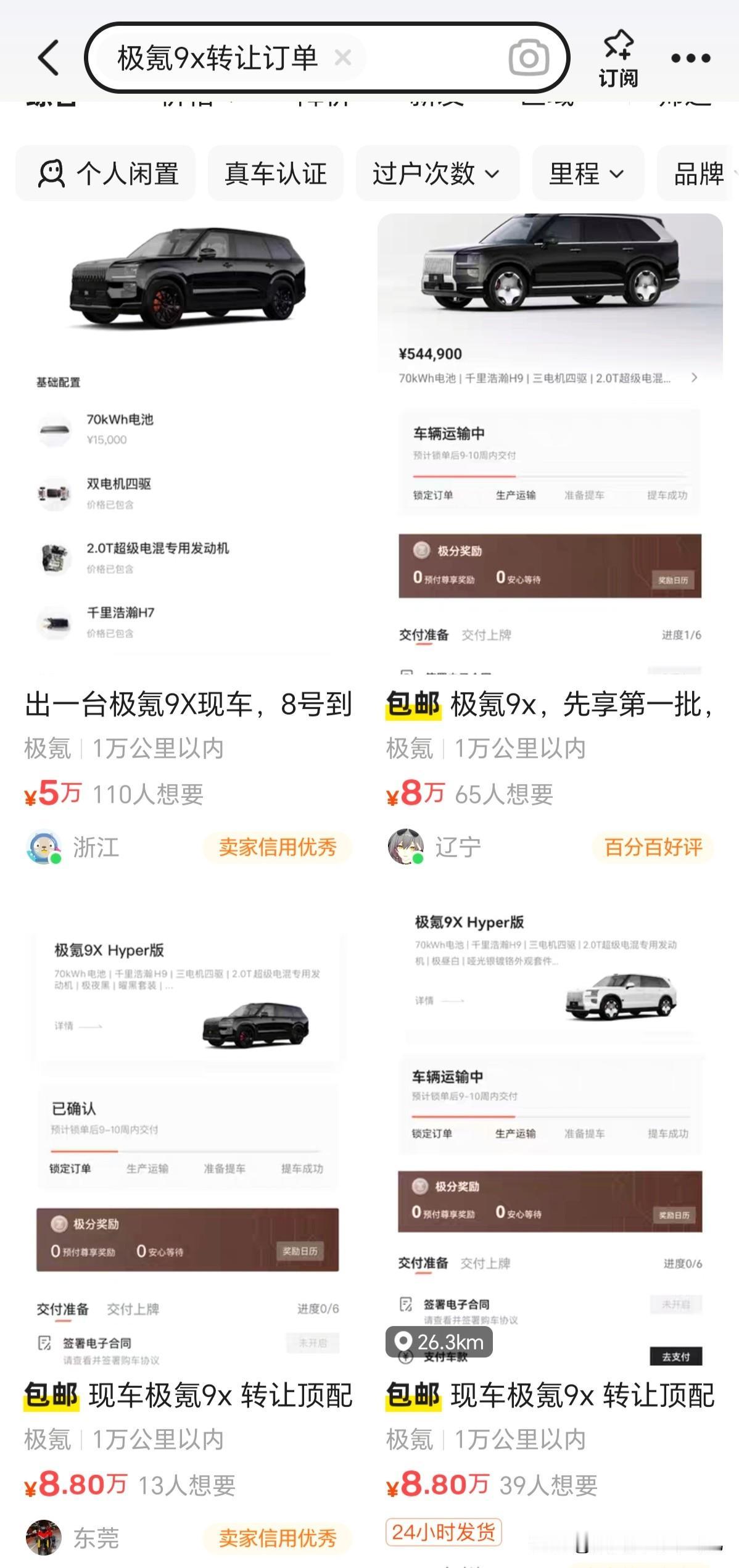 “杭州湾库里南”极氪9X现在这么火吗? 查了下小黄鱼,都要加价5-8万卖。 极氪9X加价8万这事儿,说白了就是车确实牛——900V超充、3秒级加速、还能旋转的二排座椅,产品力够硬。但关键还是产能跟不上订单,13分钟订单破万,顶配零件供应还卡脖子,搞得市面上车少订单多,黄牛可不就趁机炒价了嘛。连海外市场都跟着凑热闹加价五到十万。 这波加价确实说明国产高端电车支棱起来了,但长期看,光靠饥饿营销不行,最后还是得回归到品控、服务和用户体验。等产能上来了,这波加价潮自然就会退烧。