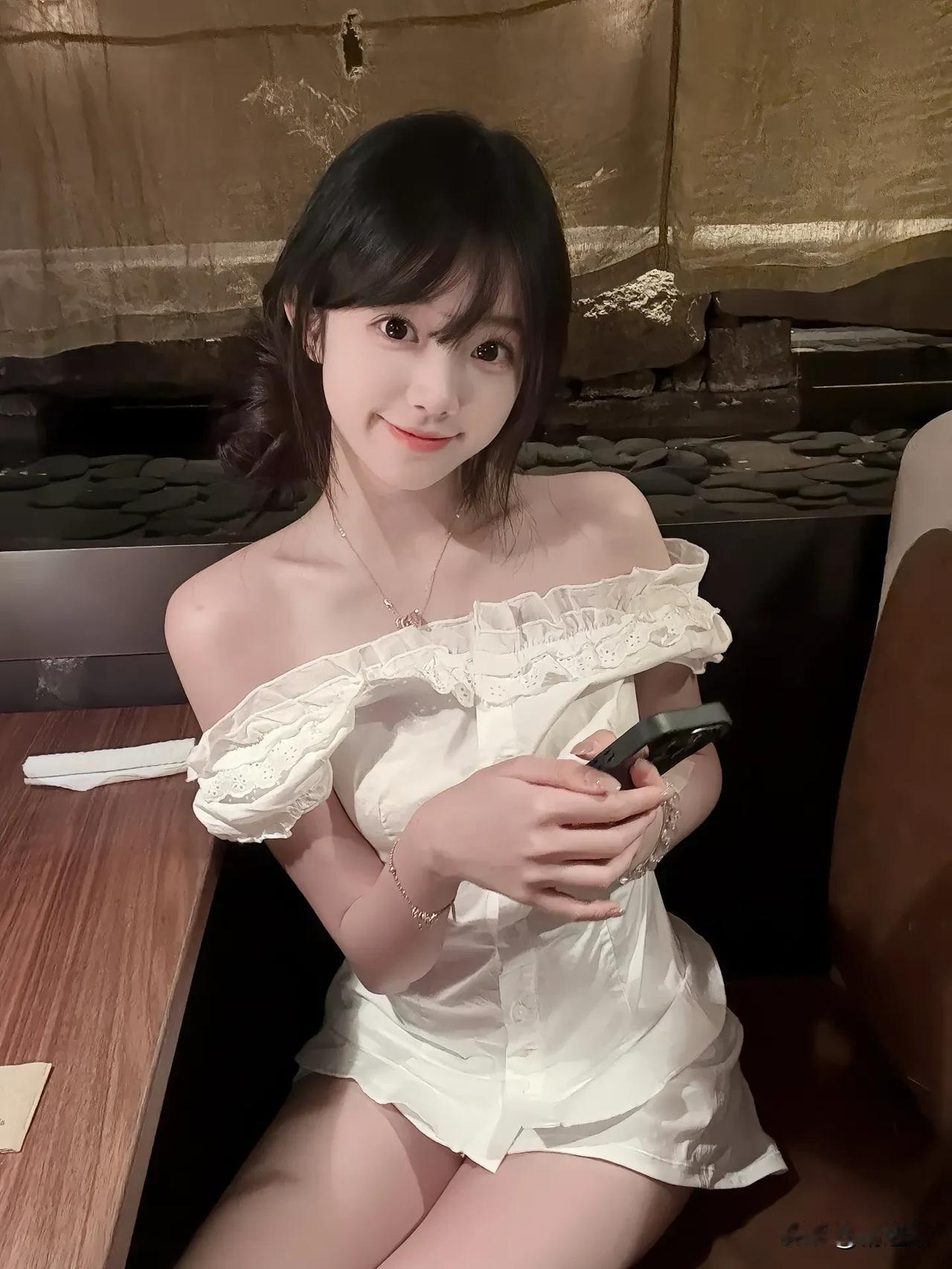 温柔甜美的白裙少女,浅笑盈盈,优雅迷人。