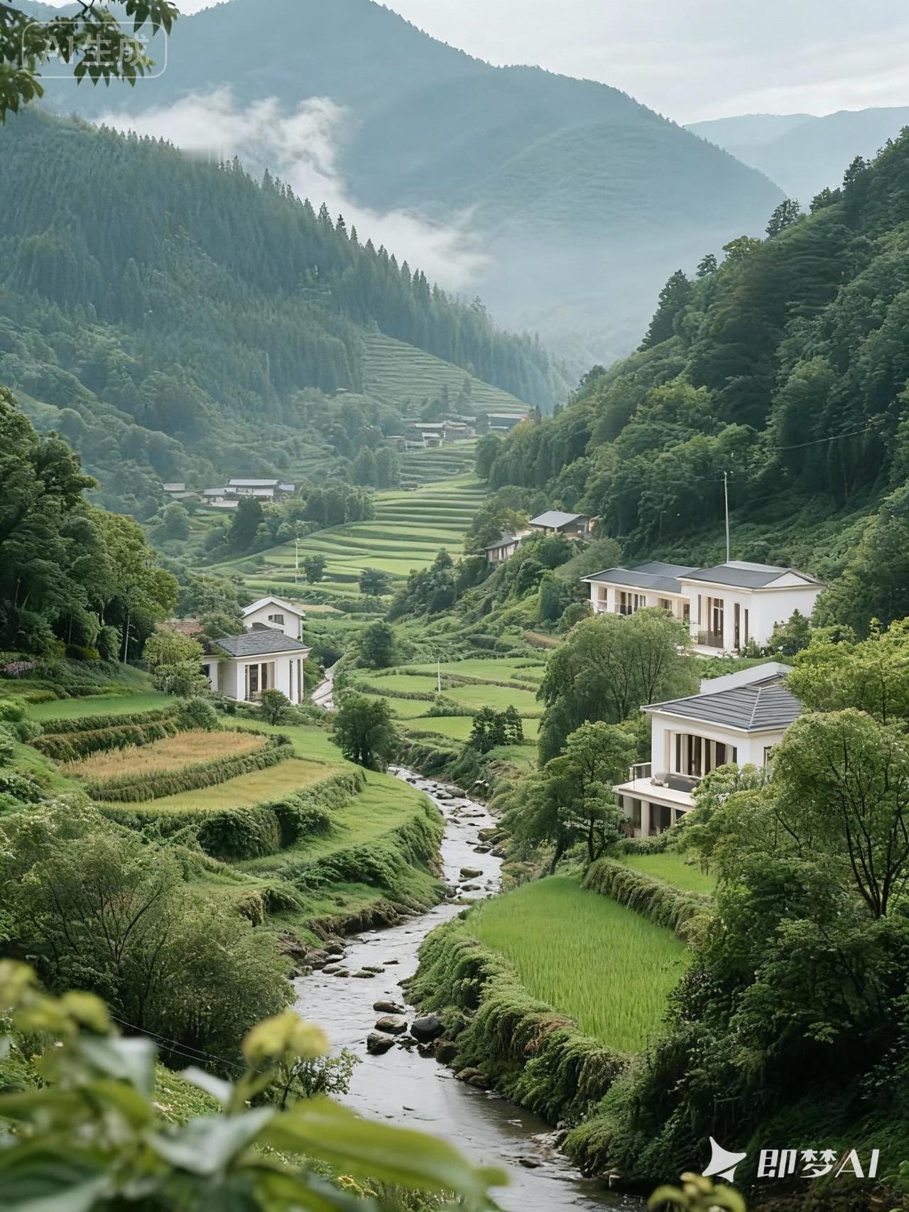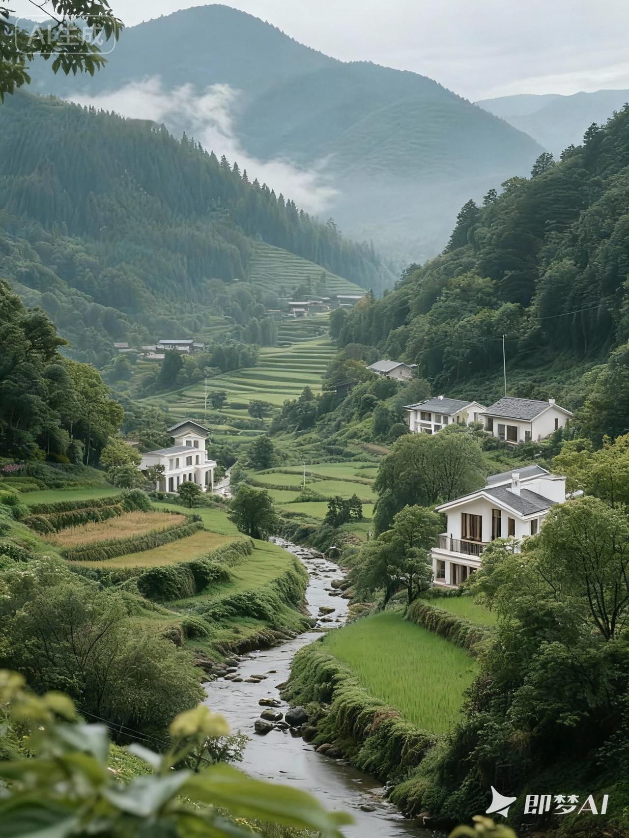 “云雾缭绕的田园风光,宁静的乡村生活”🌿🏡🌄