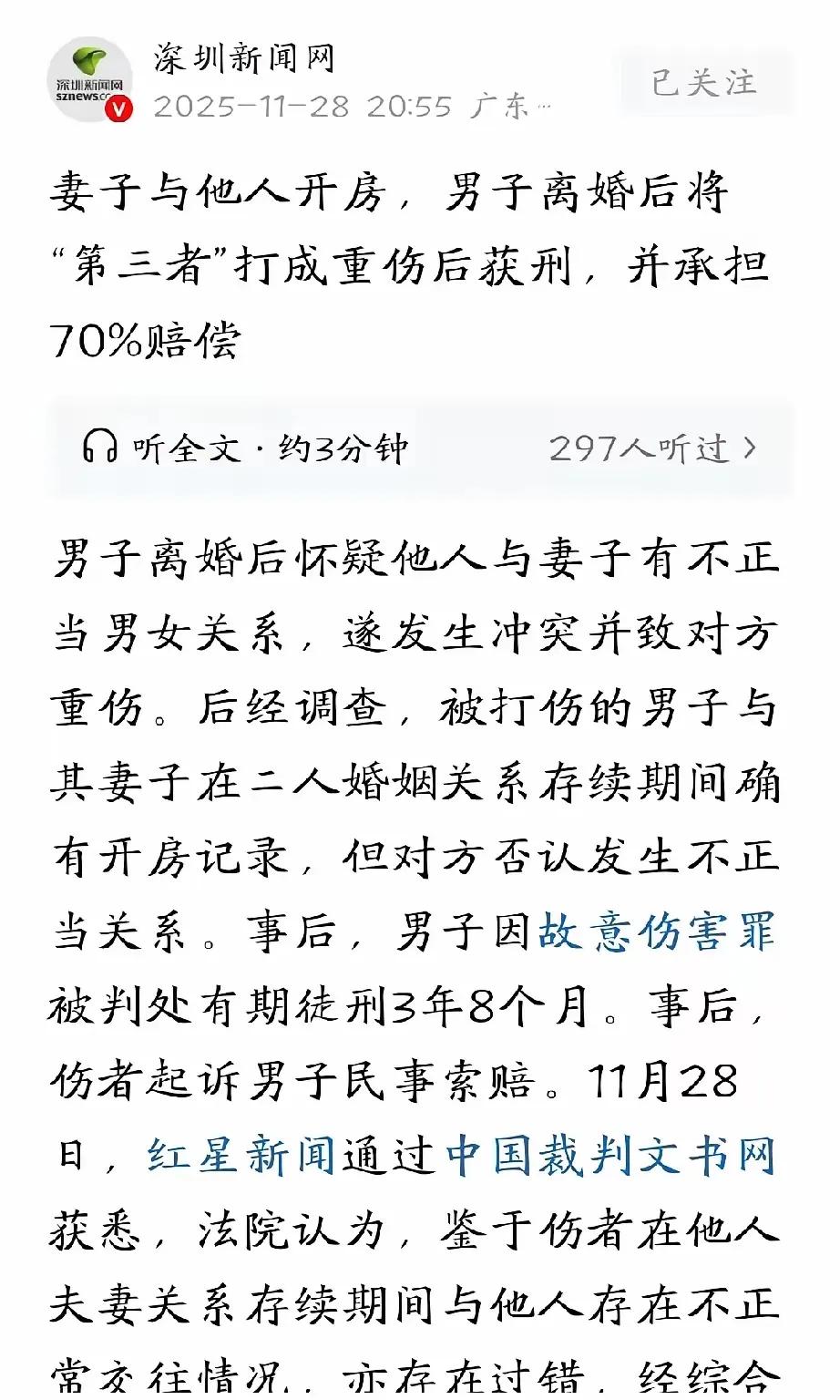 河南长垣,丈夫和妻子离婚一个多月后,发现妻子和另一男子举止亲昵,他调查发现,妻子婚内就和男子有开房记录,一个月通话80多次,还给男子转账4万元,怀疑这就是导致他们感情破裂的重要原因,于是一气之下把男子打成重伤二级。男子报警后,丈夫因故意伤害罪被判处有期徒刑3年8个月。不仅如此,男子还提起民事诉讼,要求丈夫赔偿人身损害52万余元。丈夫不服,男子和他妻子开房,有错在先,不予赔偿。男子:我们只是开房,并没有发生不正当关系,必须赔偿。 这场家庭悲剧的背后,折射出的是现代婚姻中那些令人扼腕叹息的裂痕,也揭示了人性中那些复杂而微妙的情感变迁。在这个看似普通的河南长垣故事中,隐藏着许多值得深思的社会现象:婚姻的信任崩塌、感情的破碎、法律与道德的角力,以及人在极端情绪下的失控。 我们不得不问:一个月内频繁通话、转账4万、甚至开房的行为,究竟意味着什么?是爱情的背叛,还是一场误会?还是那一点点积累的裂痕终于无法修补,变成了无法挽回的深渊?而丈夫的怒火,是否也能理解?在情感的失控中,他用暴力试图挽回那些破碎的信任,却换来了更深的伤害和法律的惩罚。 这不仅仅是一起家庭纠纷,更像是一面镜子,映照出现代人在情感、法律和道德之间的挣扎。有人说,感情的事,终究难以用法律来衡量,但当一方的信任崩塌,另一方的愤怒又能容忍到何时?更令人心碎的是,男子坚称“只是开房,没有不正当关系”,这究竟是自我辩护,还是对事实的扭曲?而丈夫的愤怒和冲动,又是否预示着现代人在面对情感背叛时的无助和迷失? 这个故事让人忍不住想反思:我们每个人在面对婚姻的变故时,又是否都能保持理智?在爱情的天平上,信任和理解才是最珍贵的砝码。而当情感出现裂痕时,是否可以用沟通和包容来修补?还是说,社会的压力、经济的压力、个人的情感问题,最终都化作了不可调和的矛盾,让人走向不可挽回的深渊? 读到这里,你是否也在心中泛起了共鸣?我们都曾在爱情中迷失过,也都在家庭中挣扎过。这个故事告诉我们:爱,不能仅靠冲动和暴力来维护;信任,更需要用心去经营。否则,等待我们的,可能只是无限的遗憾和无尽的法律诉讼。 愿每一对情侣都能珍惜彼此的信任,愿每一个家庭都能在风雨中坚守初心。因为,最深的伤,往往不是外在的伤痕,而是那一份曾经深信不疑的心碎。婚姻现实解读 情感婚姻的本质